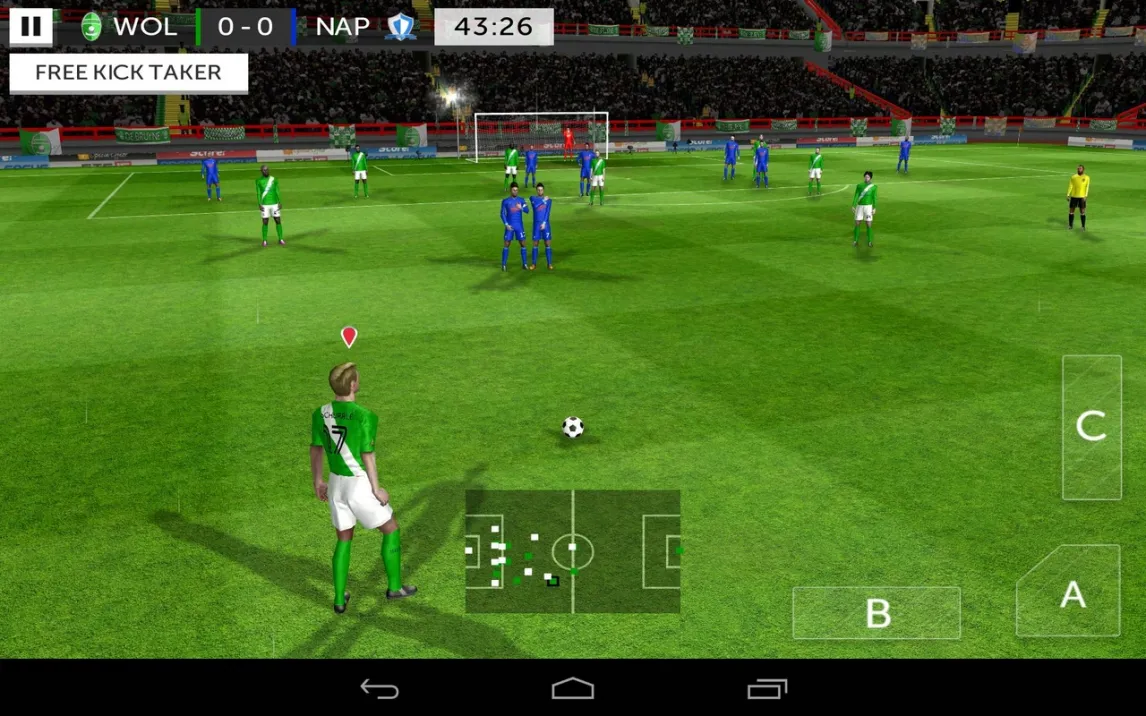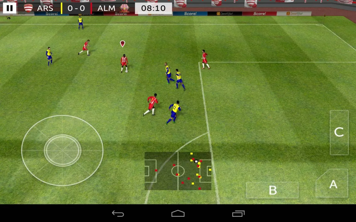 Ядро проекта составляет детализированная система контроля на поле. Управление разделено на два сегмента: виртуальный джойстик в левой части экрана отвечает за перемещение футболиста, а набор тактических кнопок справа — за взаимодействие с мячом. Ключевой особенностью является система целеуказания для ударов и передач, где направление задается жестом, что добавляет слоя стратегии каждому эпизоду. Физика полета мяча и поведение игроков смоделированы с акцентом на правдоподобие, что требует от пользователя расчета силы и траектории.