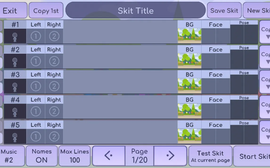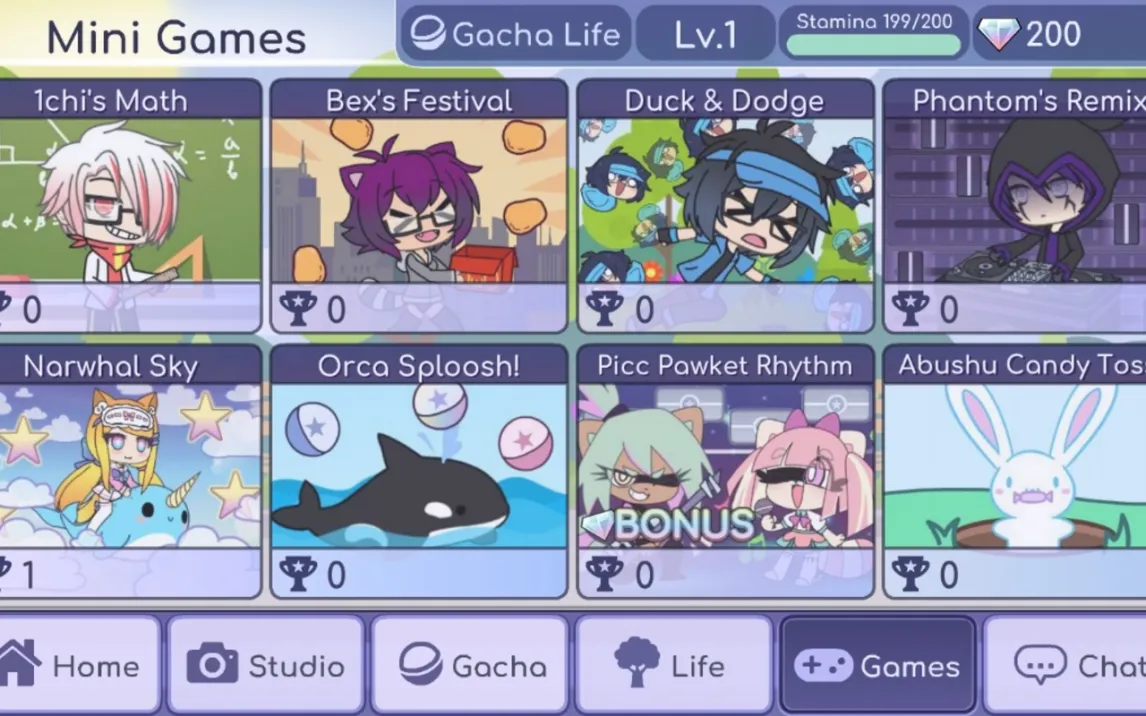 Для создания интерактивных историй используется режим Skit Maker. В этом режиме вы размещаете до десяти персонажей на выбранном фоне, задаете им позы, выражения лиц и текстовые реплики. Система позволяет создавать многосценовые проекты, сохранять их в память устройства или экспортировать видео для публикации. Отдельно доступен Life Mode — режим жизни, где ваш персонаж может исследовать локации, взаимодействовать с другими героями и находить коллекционные предметы. В игру также встроены восемь мини-игр различных жанров: от ритмических тапов под музыку до аркадных задач по сбору предметов и логических головоломок.
