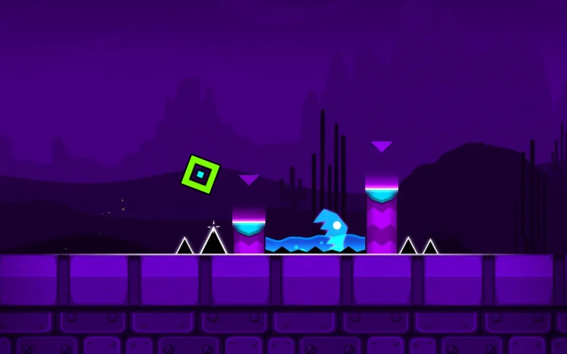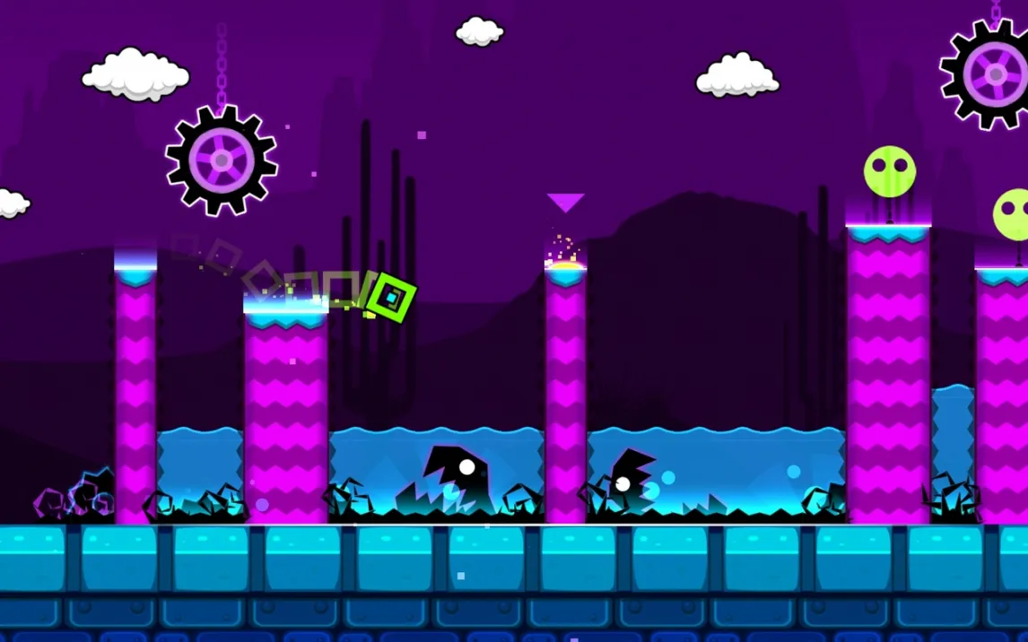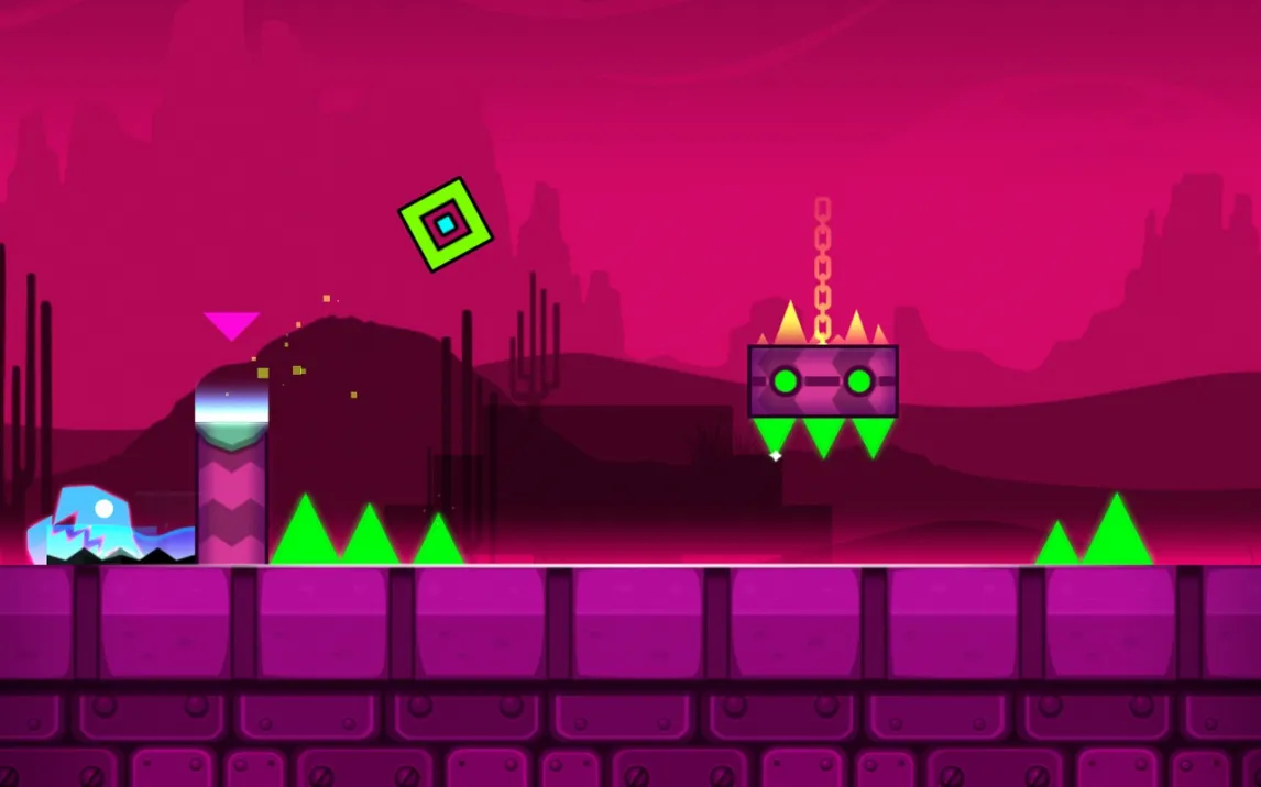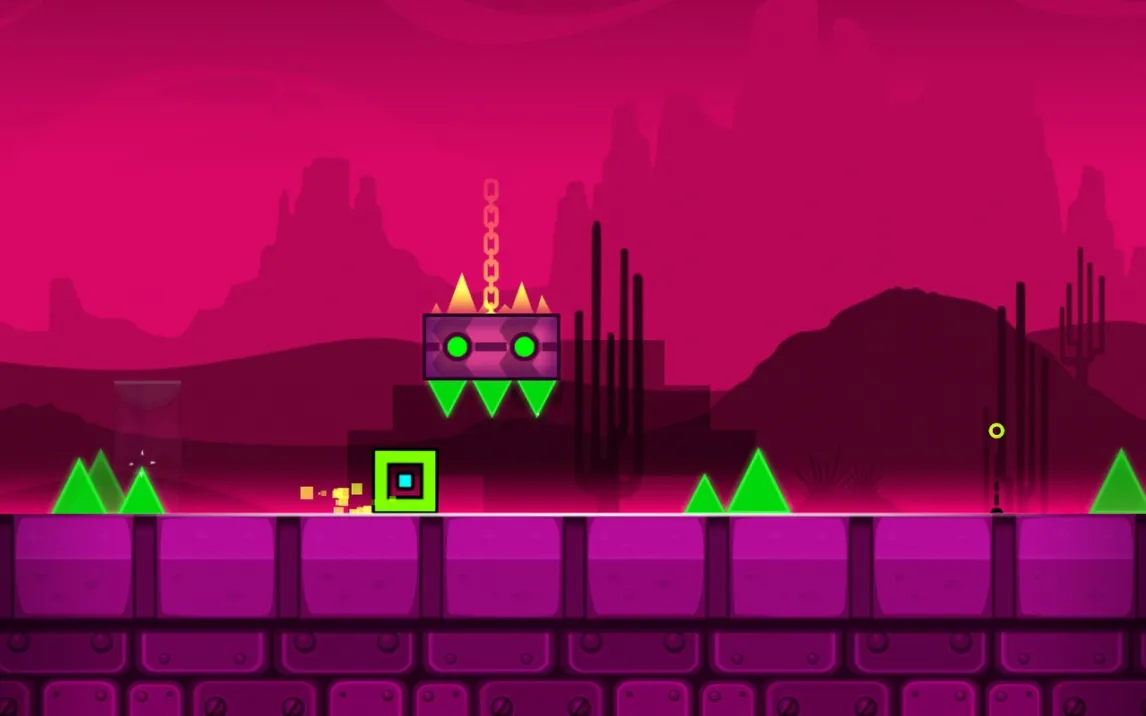 Геймплей строится на преодолении автоматически прокручивающихся уровней. Управление сводится к касаниям экрана для совершения прыжков, полётов и других действий в зависимости от формы вашего куба. Ключевая особенность — абсолютная синхронизация всех действий и препятствий с ритмом фоновой музыки. Это не просто фон, а прямой проводник. Каждая платформа, шип и портал активируются в строго заданный такт, превращая прохождение в визуализированную аудиодорожку. Смерть от малейшей ошибки возвращает к последней контрольной точке или началу уровня, требуя идеального запоминания последовательностей.