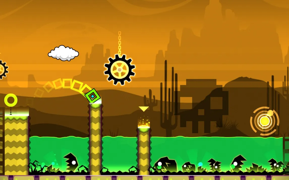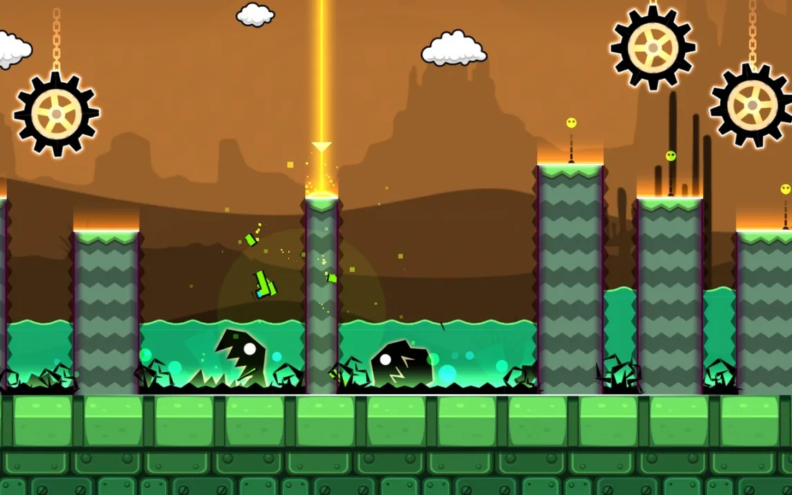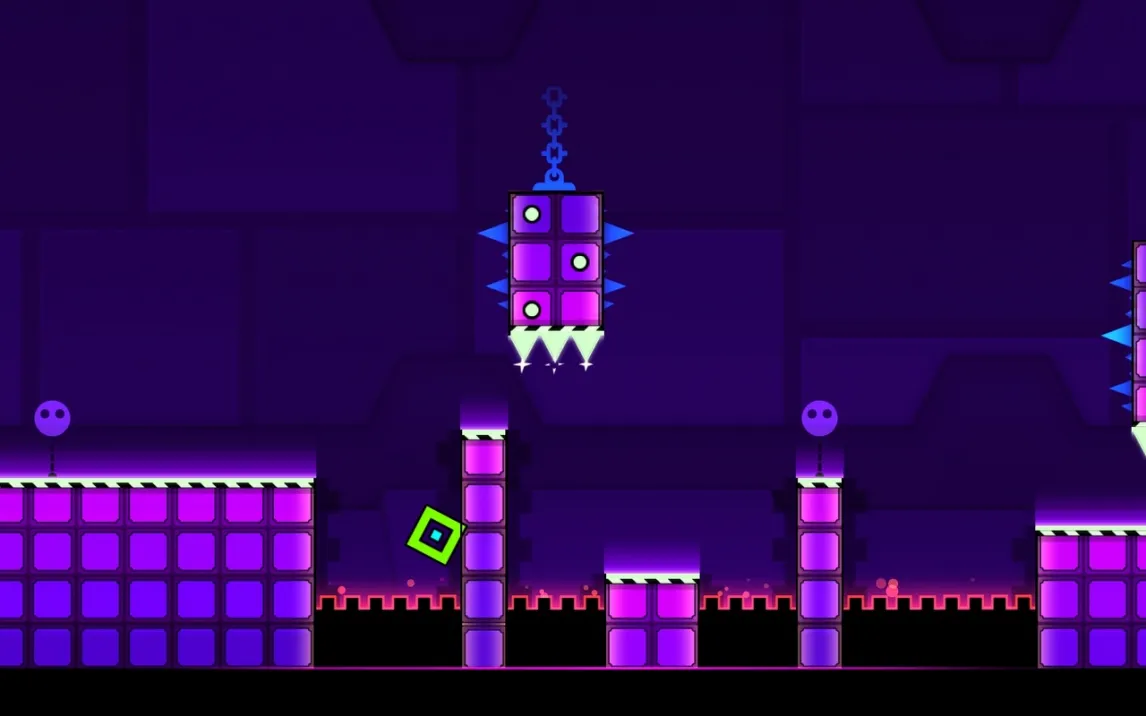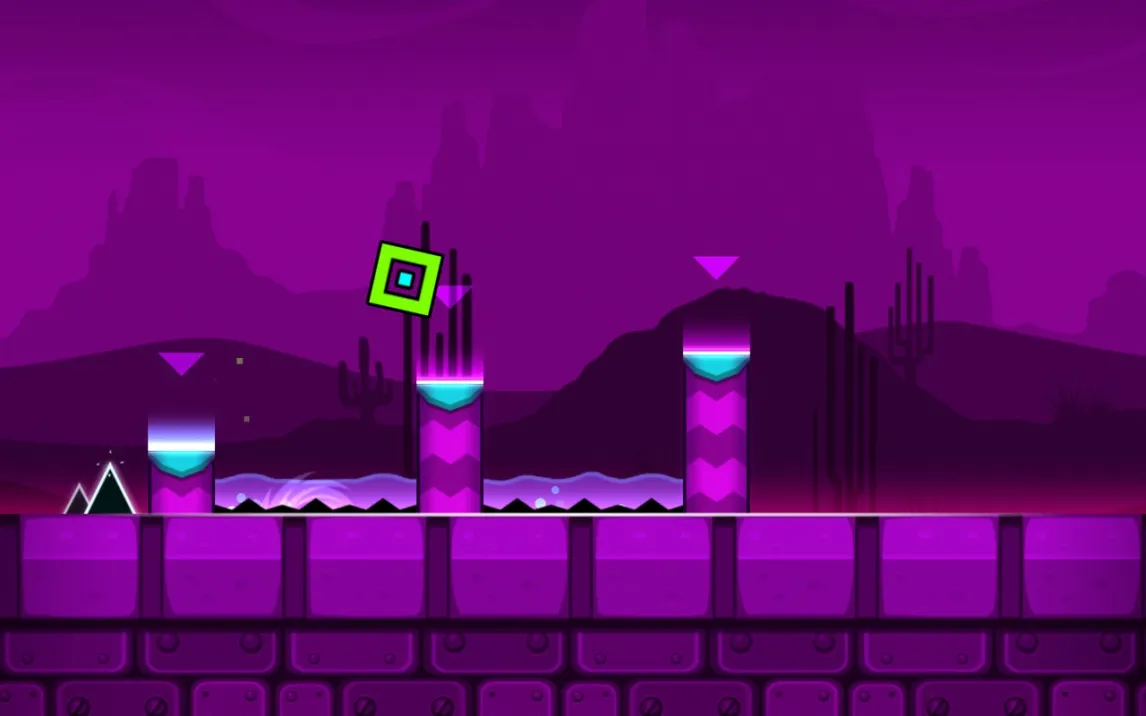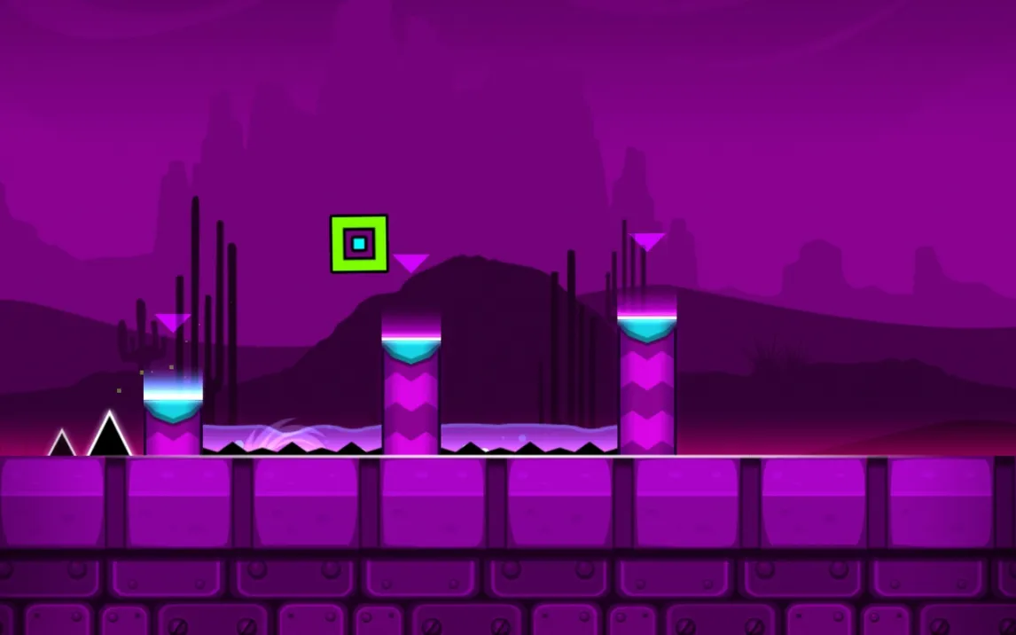 Геймплей строится на преодолении автоматически прокручивающихся уровней. Управление сводится к касаниям экрана для совершения прыжков, полётов и других действий в зависимости от формы вашего куба. Ключевая особенность — абсолютная синхронизация всех действий и препятствий с ритмом фоновой музыки. Это не просто фон, а прямой проводник. Каждая платформа, шип и портал активируются в строго заданный такт, превращая прохождение в визуализированную аудиодорожку. Смерть от малейшей ошибки возвращает к последней контрольной точке или началу уровня, требуя идеального запоминания последовательностей.
