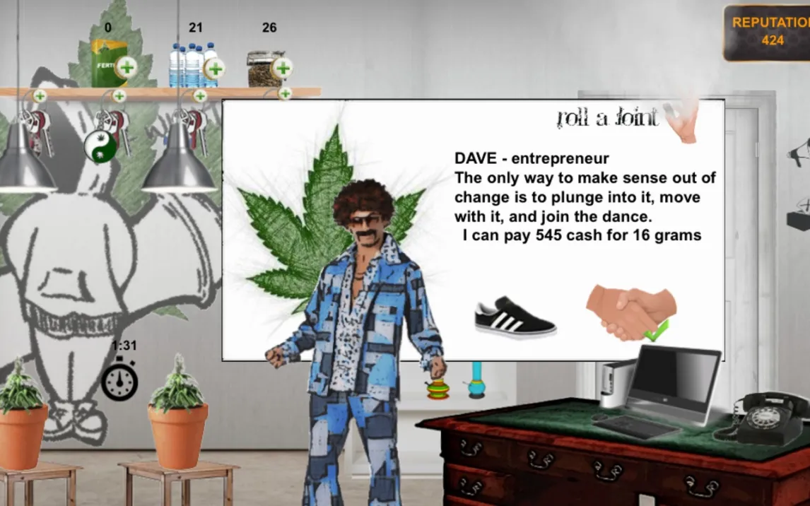 Основной цикл включает селекцию семян, контроль условий выращивания (освещение, полив, климат) и организацию переработки. Ключевой вызов — оптимизировать производство под спрос на динамичном рынке, цены на котором колеблются. В игре присутствует система исследований для улучшения сортов и оборудования, а также элементы управления персоналом, где каждому сотруднику можно назначать задачи. Визуальный стиль сочетает детализированную изометрию ферм с четким интерфейсом, предоставляющим всю необходимую аналитику по урожайности и финансам.