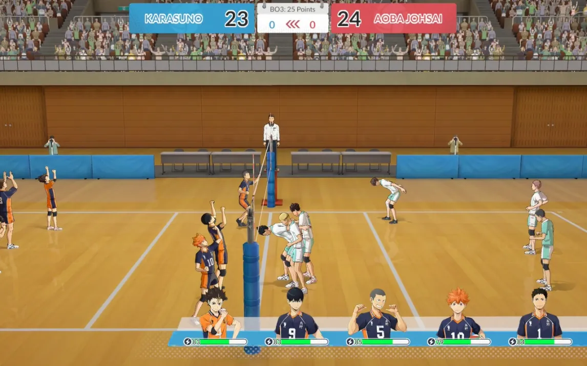 Непосредственно матчи проходят в детализированной 3D-среде. Анимация движений, включая прыжки, блоки и атакующие удары, отличается плавностью и кинематографичностью. Каждое розыгрыш очка визуализировано с акцентом на динамику и зрелищность. Это создает эффект присутствия, максимально приближенный к атмосфере ключевых матчей из аниме-сериала. Отдельного внимания заслуживает полное озвучивание оригинала. Все диалоги и реплики персонажей дублированы японскими актерами, что сохраняет аутентичность. В настройках доступно переключение на английскую озвучку.