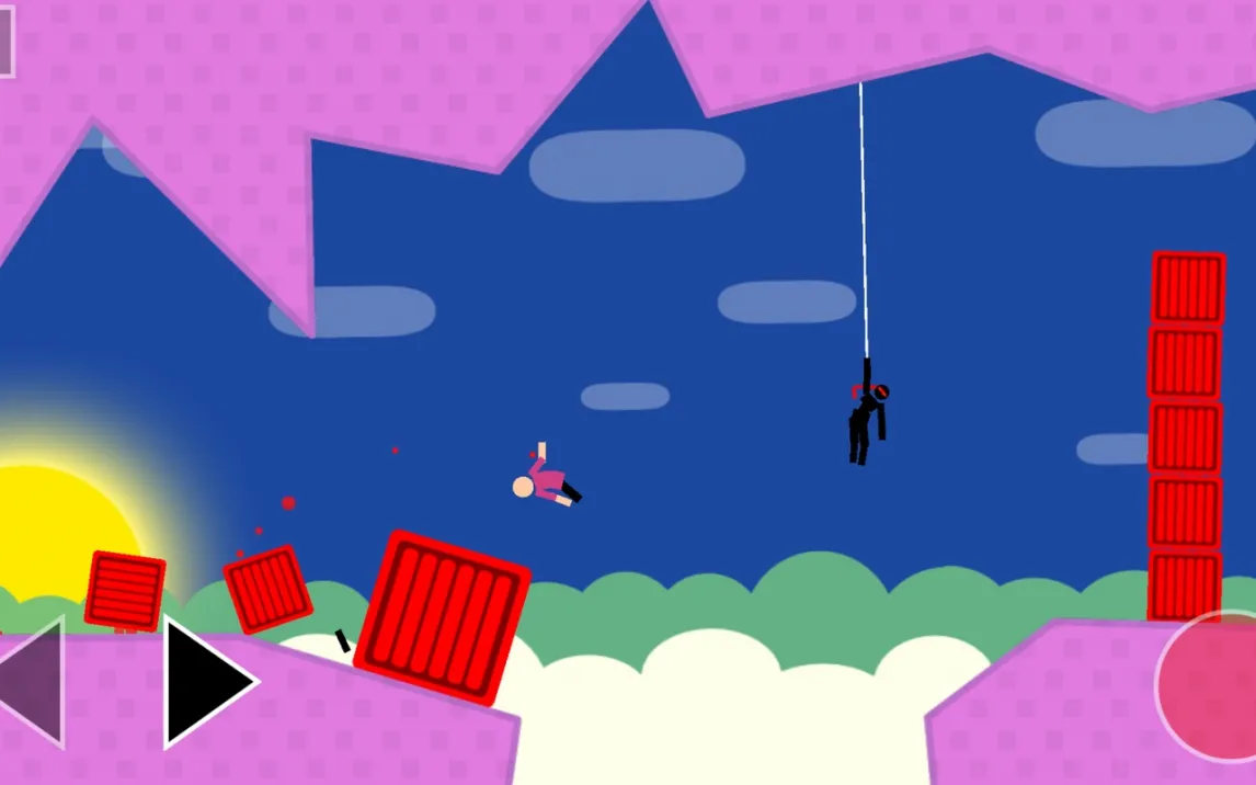 Каждый уровень — это головоломка на движение, где нужно собирать рассыпанные монеты, прокладывая самый эффективный и часто самый безумный маршрут. Но расслабляться нельзя: мир полон опасностей. Начинается всё с коварных низких потолков, о которые можно запросто удариться, но дальше вас ждут куда более изощрённые испытания. Остерегайтесь режущих лазерных лучей, смертоносных вращающихся пил и даже загадочных инопланетных созданий. Особенность игры — её продвинутая физическая система и юмористический подход к повреждениям. При столкновении с препятствиями герой может потерять конечность в зависимости от точки удара, что добавляет стратегический элемент и массу забавных ситуаций. Не волнуйтесь, это совершенно не кроваво и выглядит комично — вы часто будете добираться до финишного флага, отчаянно цепляясь за верёвку одной оставшейся рукой.