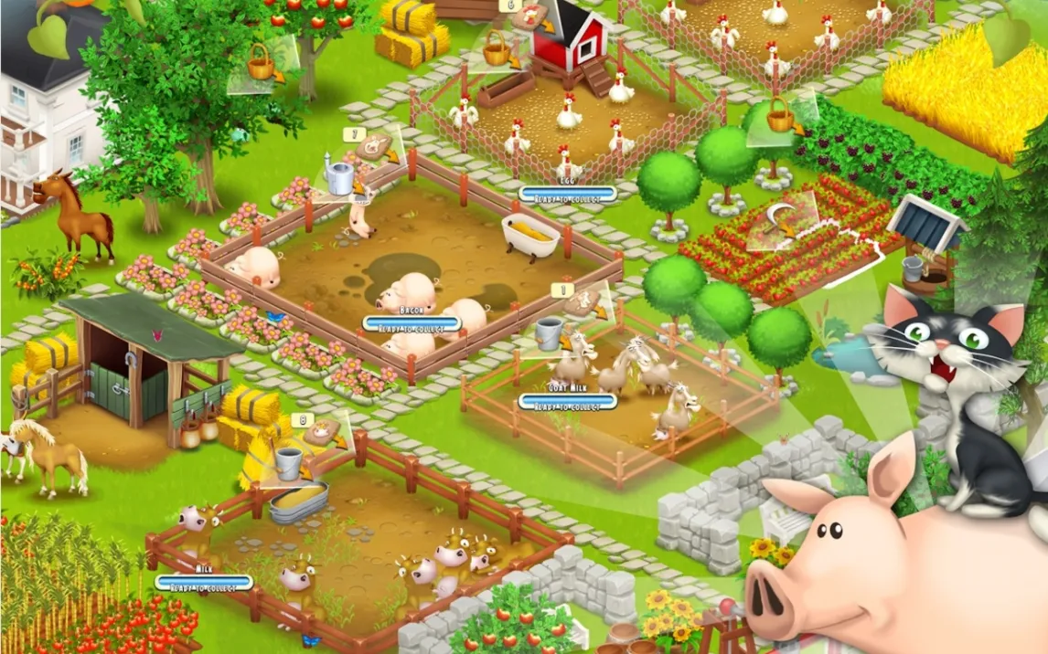 Hay Day от Supercell представляет собой глубокий симулятор фермерского хозяйства с элементами стратегии. Игрок начинает с небольшого участка земли, нескольких грядок и пары животных. Основная цель — системное развитие: расширение производства, оптимизация логистики и торговля. Механика требует планирования циклов выращивания культур, ухода за животными и переработки сырья в готовую продукцию. Отличительная черта — детализированная экономическая система, где каждый ресурс имеет ценность и может быть реализован.