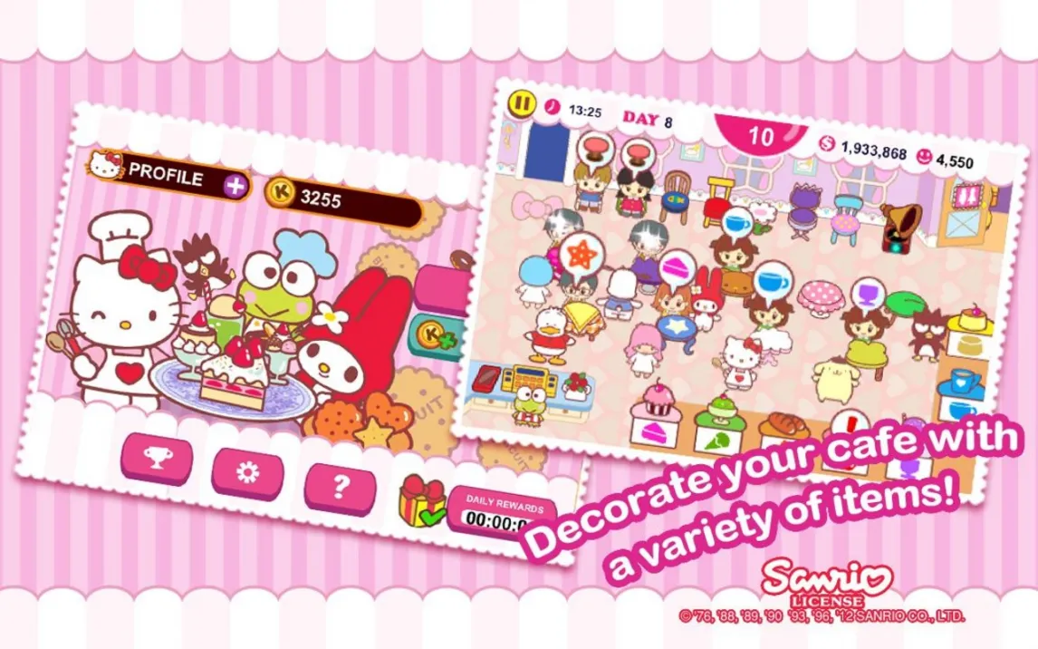 Погрузитесь в мир мягких красок и милых деталей, где вы сами создаете идеальное кафе. Это идеальное сочетание расслабляющего творчества и энергичного тайм-менеджмента. Скачайте Hello Kitty Cafe прямо сейчас и начните свое сладкое приключение!