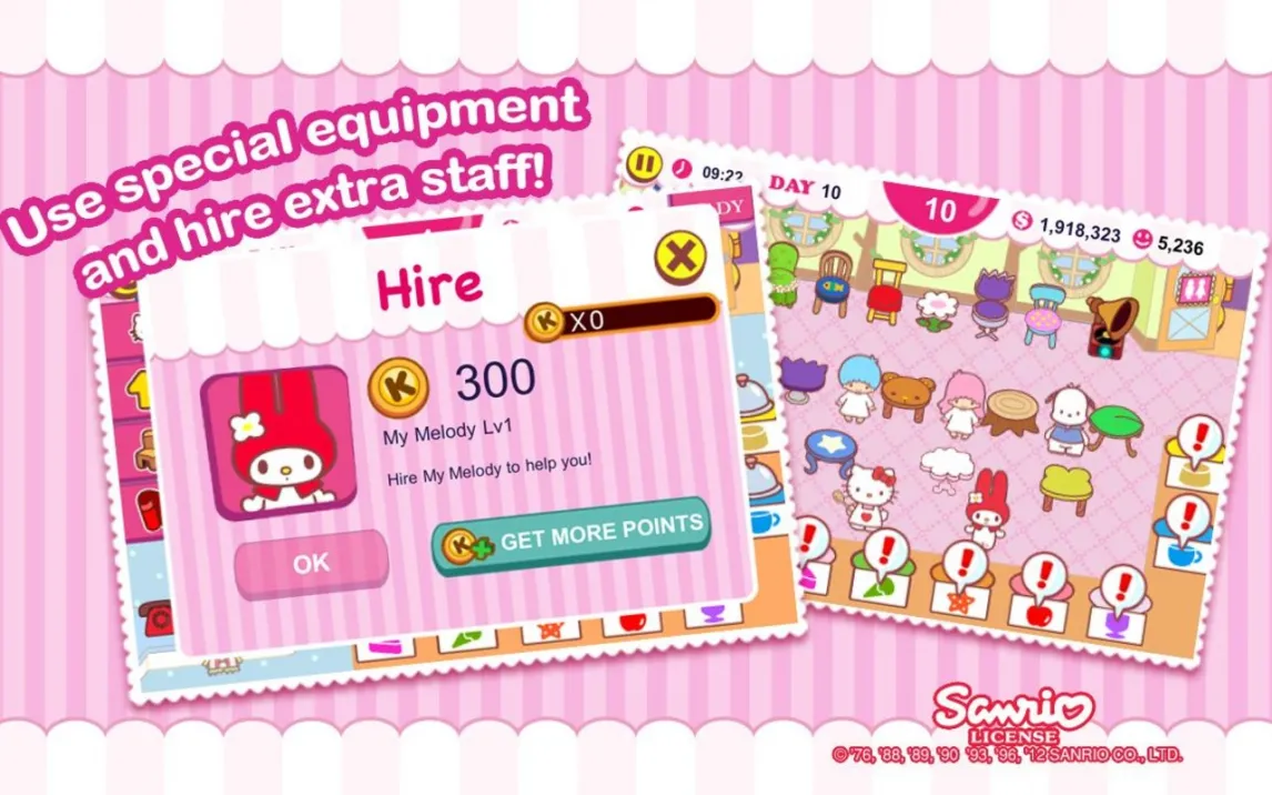 - Управление кафе с персонажами Sanrio