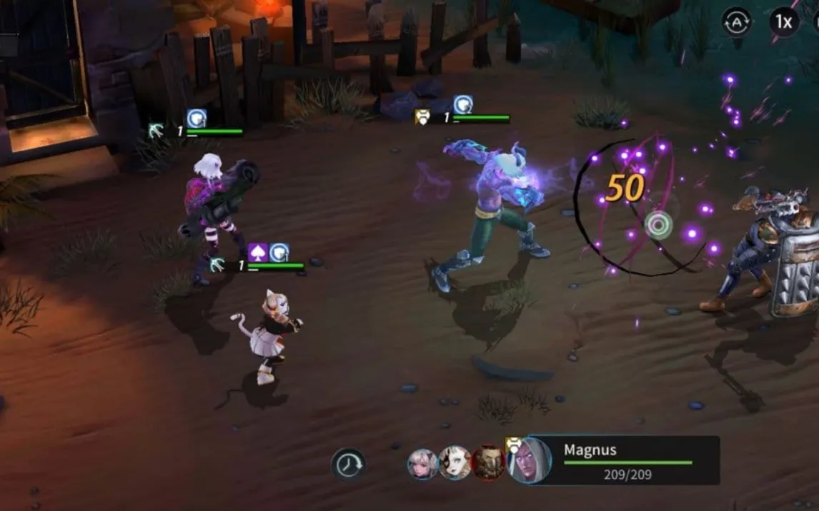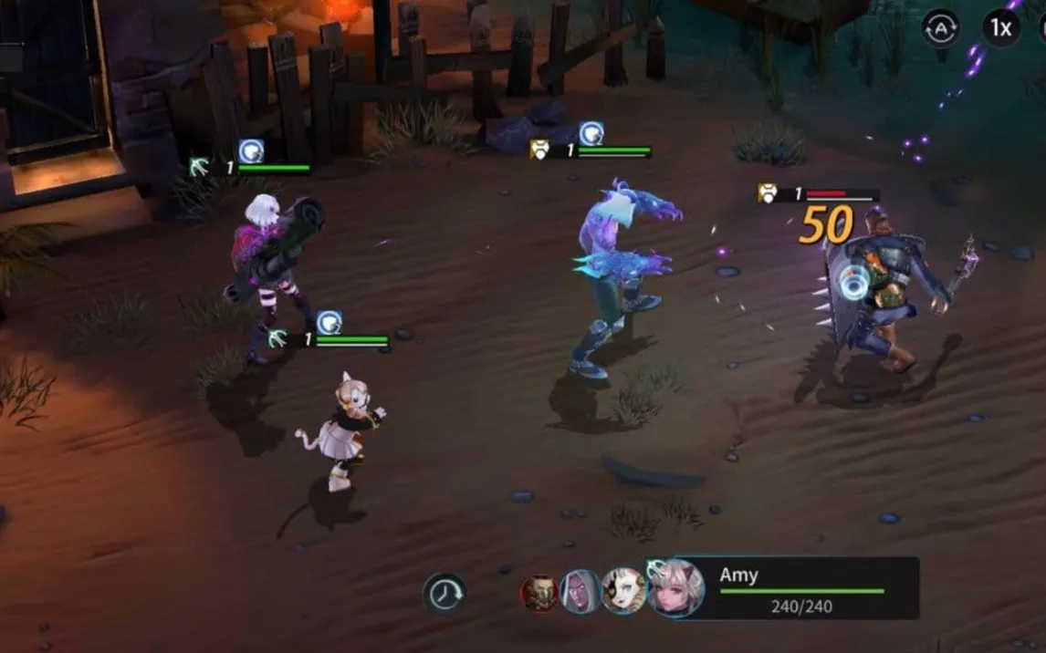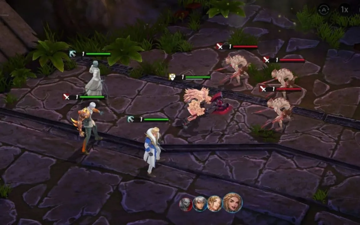 Ядро геймплея строится на контроле отряда наемников в режиме реального времени. Управление осуществляется через виртуальный джойстик для точного позиционирования каждого героя на поле боя. Интерфейс боя предоставляет полный обзор уникальных способностей всех членов команды, позволяя в любой момент назначить цель для атаки или активировать особый навык. Камера, чередующая общий план с динамичным приближением, дает возможность оценить детализацию окружения и эффекты атак, не мешая тактическому обзору. Ключевой особенностью является возможность мгновенно менять стратегию, перераспределяя цели и комбинируя атаки разных героев для создания синергетических эффектов.