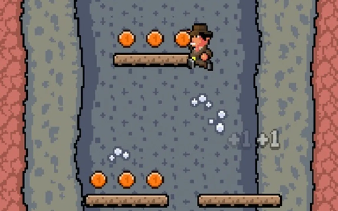 Игра предлагает классическую, но отточенную механику 2D-платформера. Управление идеально адаптировано для мобильных устройств. Герой автоматически бежит вперёд, меняя направление у края платформы. Вся глубина контроля заключается в прыжке. Короткое касание — короткий прыжок. Долгое нажатие — мощный, затяжной прыжок через пропасть. От вашего выбора зависит, достигнете ли вы следующего уступа или сорвётесь вниз.