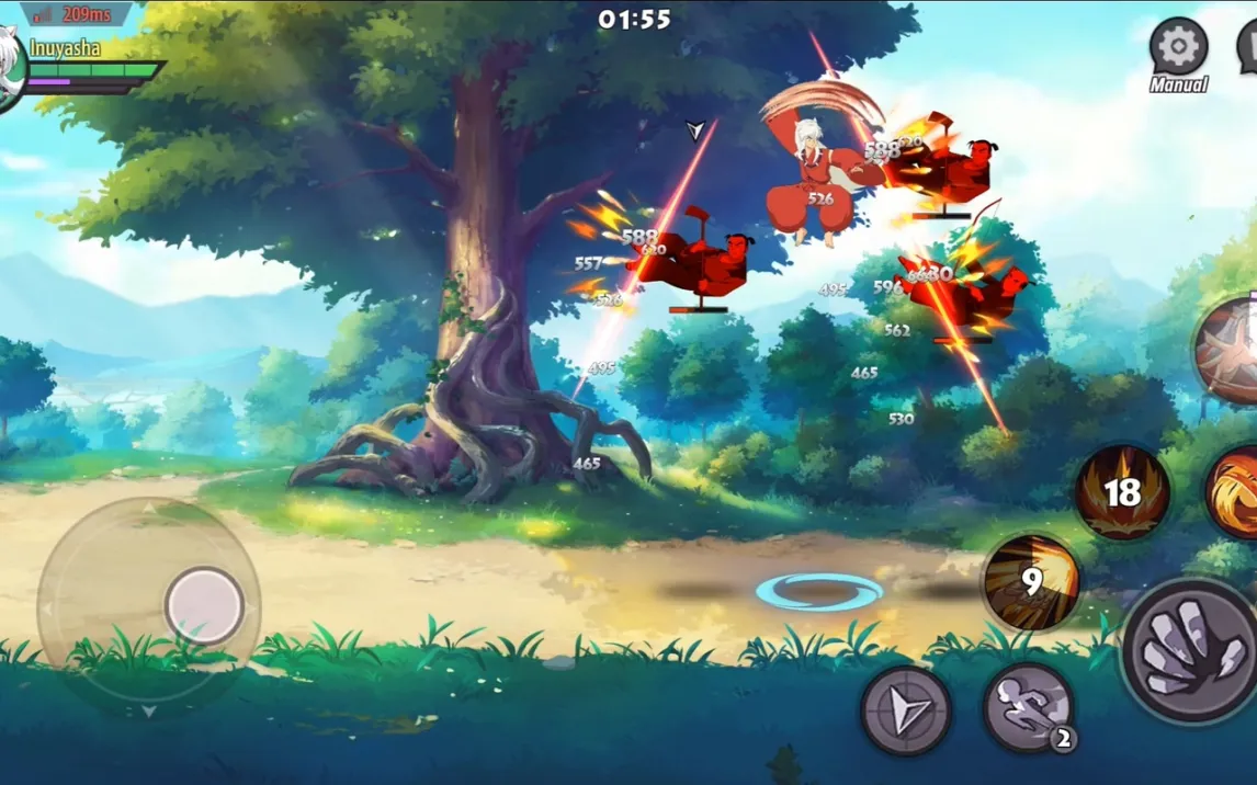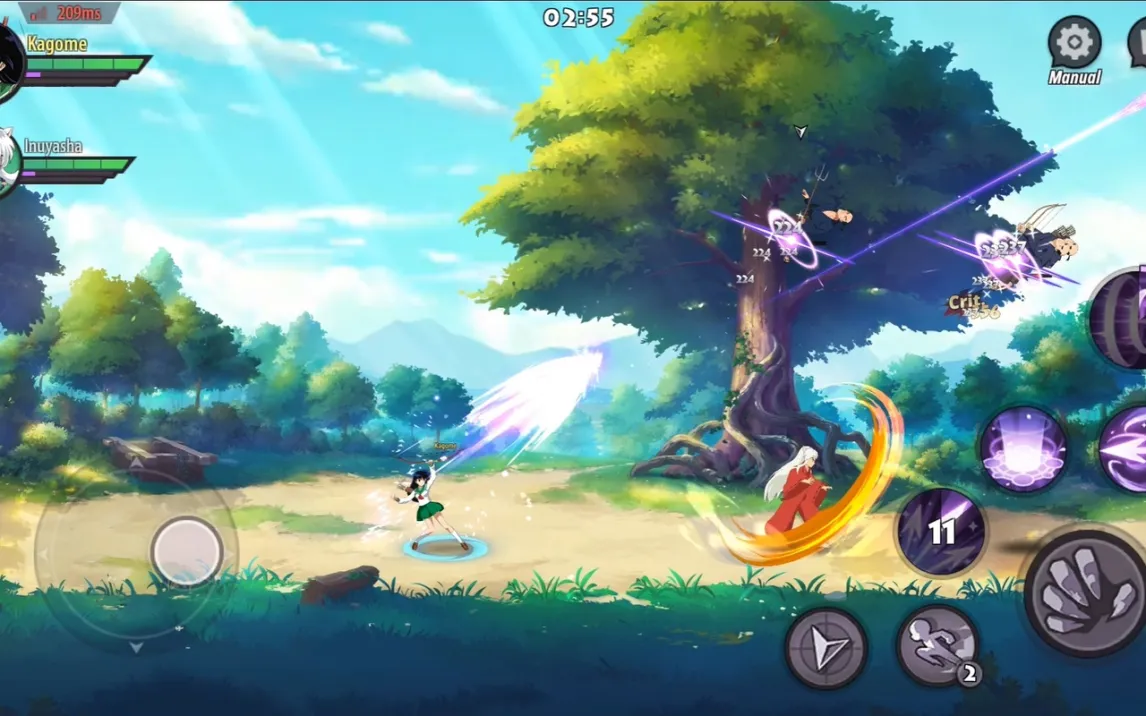 Игра предлагает классический, но отточенный геймплей в духе «побей их всех». Управление интуитивно: левая часть экрана для движения, правая — для атак и специальных навыков. Ваша задача — не просто нажимать кнопки, а мастерски уклоняться от атак противников и выстраивать эффектные комбинации. Каждый бой — это яркое двухмерное зрелище с сокрушительными спецприёмами. Вы сможете собрать всю команду: от решительной Кагоме и саркастичного Инуяши до Мироку с его Дырой Праведной Силы и Санго с её гигантским бумерангом Хирайкото. Каждым героем можно управлять напрямую, а остальные члены отряда будут сражаться автоматически, поддерживая вас в гуще схватки.
