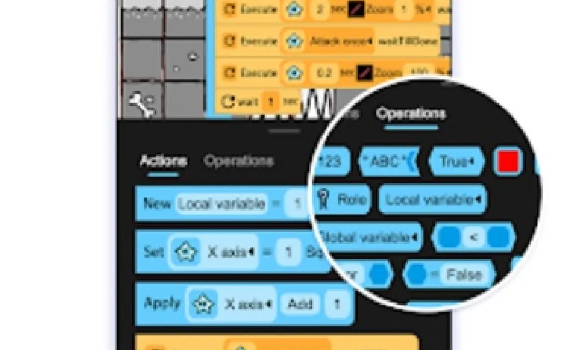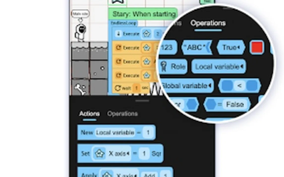 Сложные игровые механики программируются с помощью системы визуального блочного кодирования. Перетаскивайте логические блоки, чтобы задавать поведение персонажей, условия победы, диалоги, систему инвентаря или реакцию на касания. Это делает создание сложных RPG с квестами или платформеров с физикой абсолютно доступным. Готовые проекты можно выставить в общем Creator Space — это ваше портфолио и социальная сеть для геймдизайнеров.