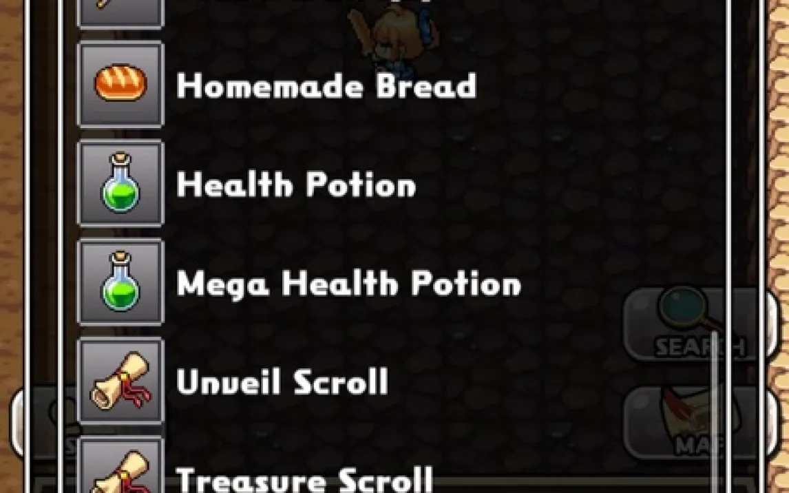 Система управления использует традиционную для подобных проектов схему. В нижней части экрана расположена виртуальная D-панель для движения в восьми направлениях, а также отдельные кнопки для ближней и дальней атаки, активации предметов и доступа к полному инвентарю. Интерфейс инвентаря детализирован: каждый предмет имеет не только статистические показатели (урон, защита, длительность эффекта), но и вес, напрямую влияющий на стратегию комплектации перед спуском в данж. Отдельное меню отвечает за просмотр характеристик приручённых существ и управление ранчо.