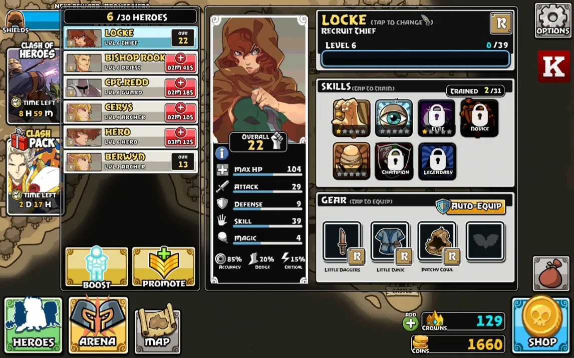 Создайте непобедимый отряд из 16 типов персонажей, включая лучников, воров и священников. Управляйте каждым героем по отдельности в пошаговых сражениях, используя их уникальные навыки — от кражи золота до исцеления союзников.