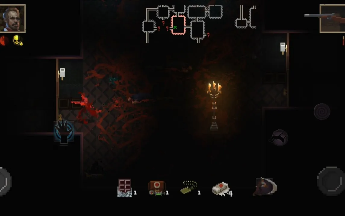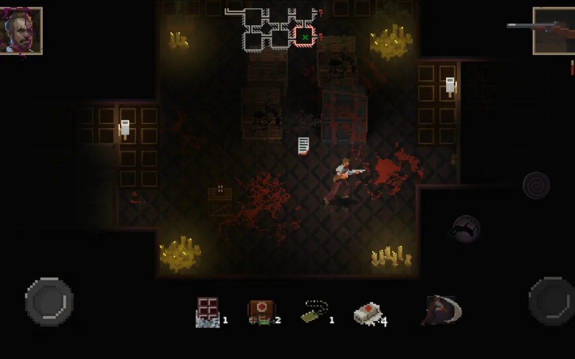 Управление реализовано по классической для мобильных twin-stick шутеров схеме: левый виртуальный джойстик отвечает за перемещение персонажа по процедурно генерируемым локациям, правый — за прицеливание и ведение огня. На правой стороне экрана также расположены отдельные кнопки для совершения уклонения и активации специальных атак, что обеспечивает тактическую гибкость в бою. Целью в представленном контенте является исследование мрачного дворца, наполненного враждебными сущностями, скрытыми секретами и ресурсами.