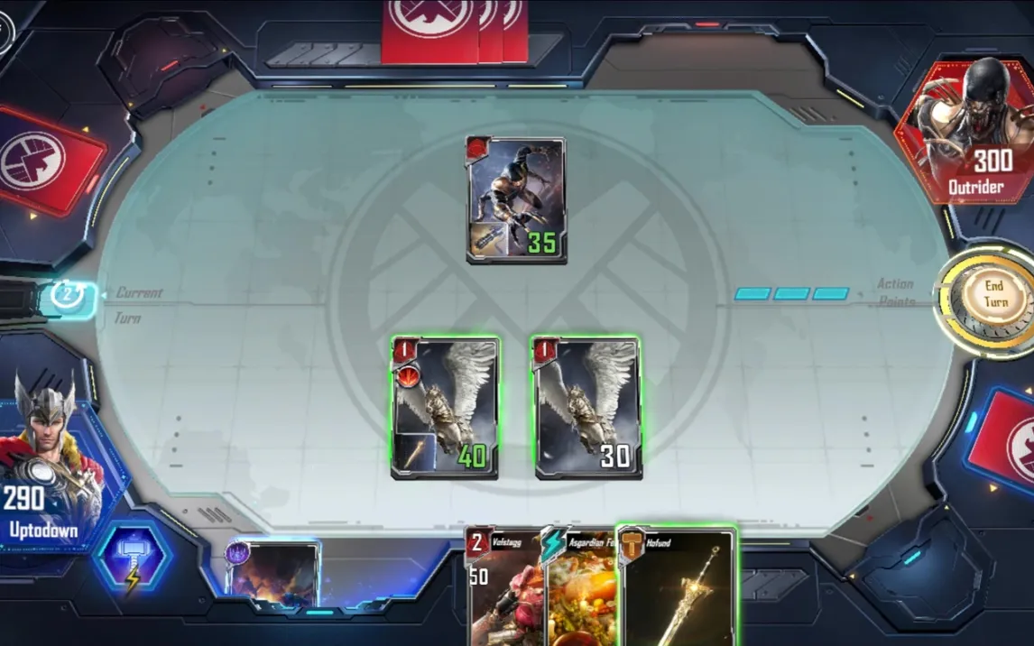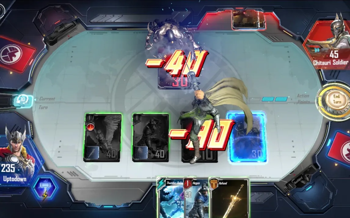 Marvel Duel представляет собой тактическую карточную игру, где решающее значение имеют планирование ходов и составление колоды. Игровой процесс отличается от классических коллекционных карточных игр, предлагая более динамичные и скоротечные матчи. Победа присуждается тому игроку, который первым истощит запас очков здоровья противника, используя комбинации персонажей и специальных карт.