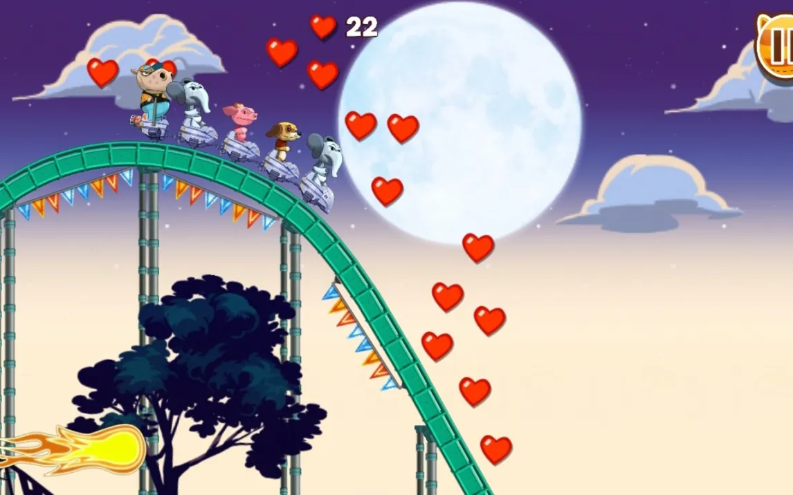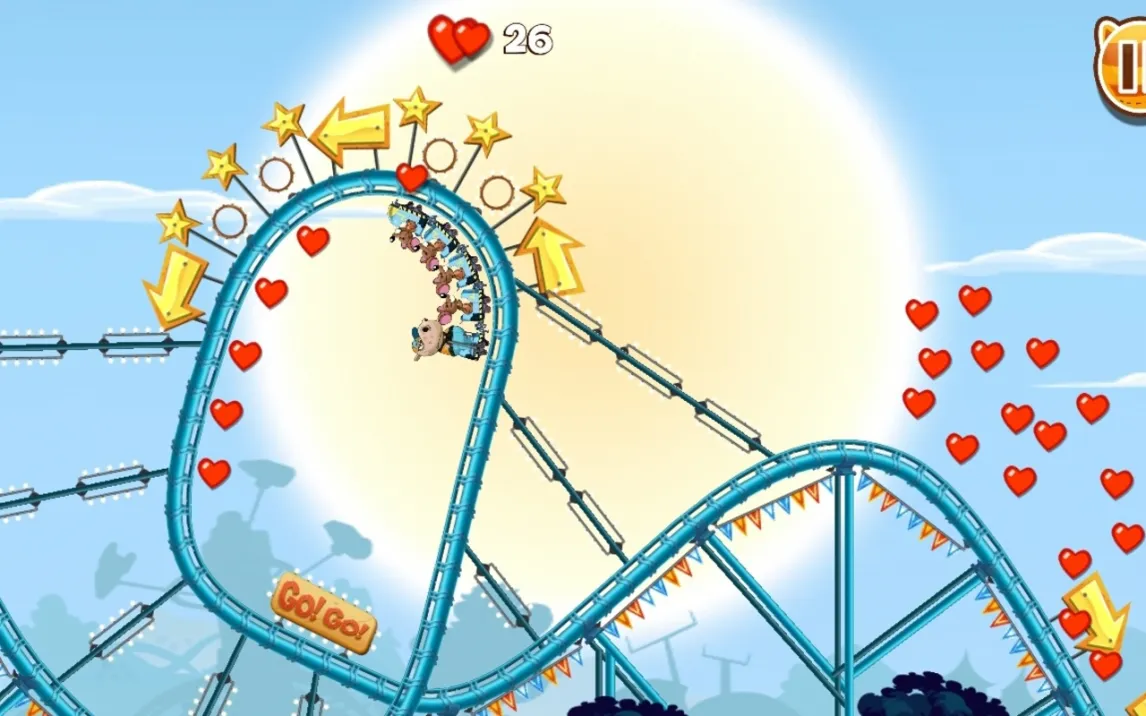 Игра предлагает интуитивное сенсорное управление: проведите пальцем вправо для разгона и влево для контроля скорости на крутых виражах. Более 30 уникальных уровней бросают вызов вашим навыкам, на каждом из которых нужно выполнять дополнительные задания для максимизации счета. Собирайте сердца, паря в воздухе на вершинах трамплинов, но помните — главное, чтобы ни один пассажир не выпал из вагончика. Стратегический подход к скорости на разных отрезках трассы становится ключом к успеху.