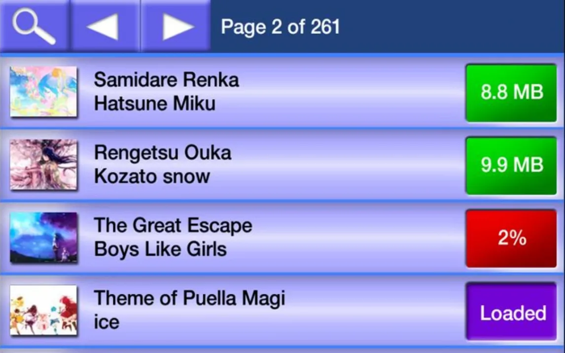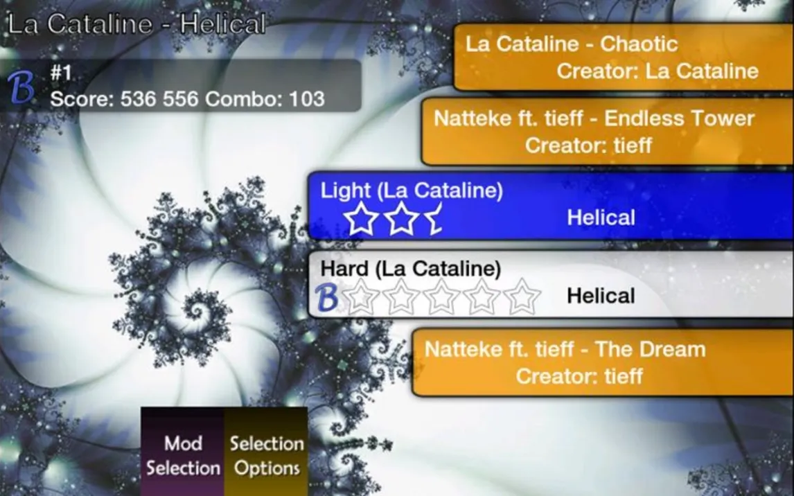 Игра поставляется без предустановленных музыкальных композиций. Весь контент загружается пользователем самостоятельно через встроенный загрузчик. Игра работает исключительно со специальными пакетами — битмапами (файлы формата .osz). Эти пакеты содержат не только аудиотрек в формате MP3, но и всю карту сложности: расположение нот, тайминг, настройки сложности и визуальное оформление. Стандартные MP3-файлы из памяти устройства напрямую использовать нельзя. В загрузчике доступен обширный каталог тысяч пользовательских битмапов, отсортированных по жанру, сложности и популярности. Перед загрузкой можно прослушать превью трека.