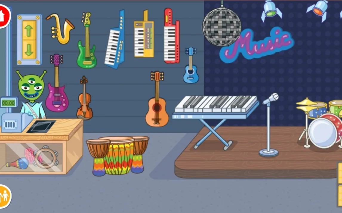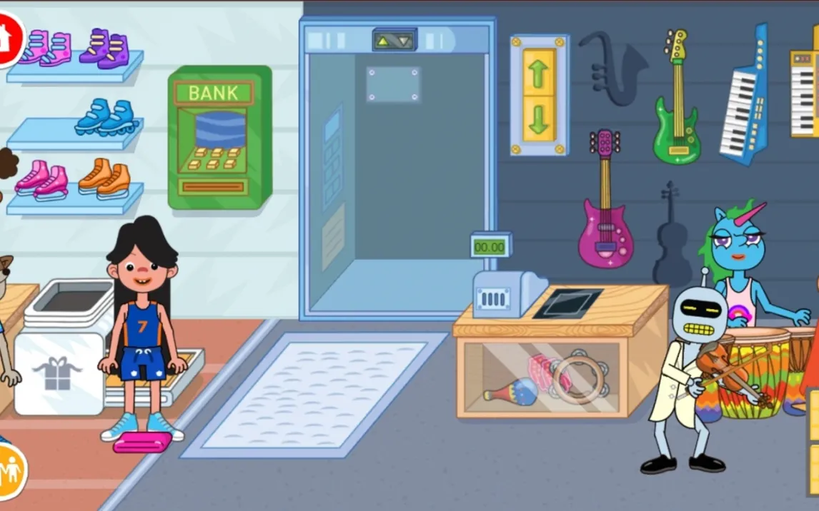 Сразу погружайтесь в атмосферу двух уникальных магазинов: музыкального и спортивного. Это ваша личная игровая площадка. Выбирайте самых разных забавных персонажей из галереи внизу экрана и расставляйте их, где захотите. Хотите устроить рок-концерт среди гитар и синтезаторов? Легко! А может, отправить всех на спортивную площадку играть в мяч или прыгать на скакалке? Запросто! Магазины находятся рядом, поэтому ваши герои могут свободно перемещаться. Музыкант может зайти потренироваться, а спортсмен — внезапно сыграть на барабанах. Каждый предмет в магазине живой и на него можно воздействовать, создавая свои уникальные сюжеты.