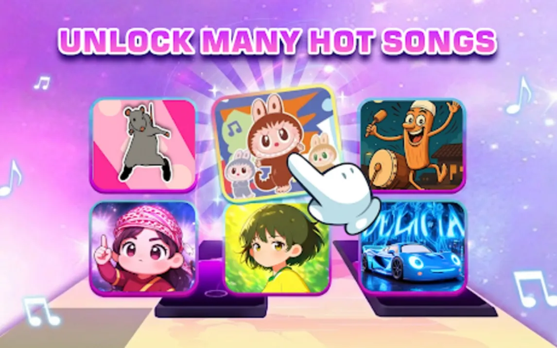 Библиотека треков содержит композиции различных жанров, включая поп-музыку, электронную танцевальную музыку и инди-треки. Каталог регулярно обновляется через серверные патчи, добавляя новые музыкальные уровни. Каждый трек имеет уникально составленную дорожку нот, которая определяет сложность и расположение паттернов плиток.