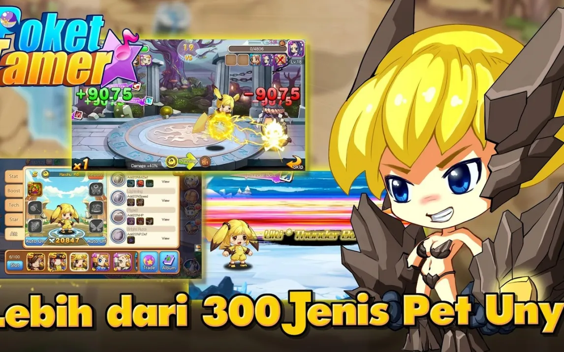 Войдите в мир, где вы собираете и тренируете уникальных существ — покетов. Каждый покет обладает особым набором способностей и стихийной принадлежностью, что определяет его роль в отряде. Основной цикл игры включает исследование различных локаций, пошаговые сражения с дикими покетами и тренерами, а также стратегическое развитие своей команды. Вы можете эволюционировать своих существ, комбинировать их атаки в бою и выполнять сюжетные задания, чтобы раскрыть тайны этого мира.