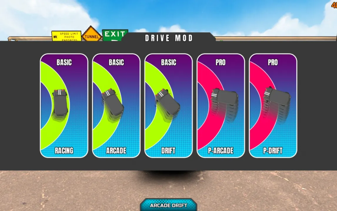 Прогрессия построена на системе гаража, где игрок получает доступ к новым автомобилям и модификациям. Каждая деталь, от дифференциала до подвески, влияет на поведение машины в заносе. Турбо-режим, доступный по подписке, снимает ограничения, убирает рекламные интеграции и предоставляет эксклюзивный контент, что ускоряет развитие игрока. Экономика игры завязана на выполнении технически сложных трюков и победах в соревнованиях, что позволяет разблокировать более специализированный транспорт.