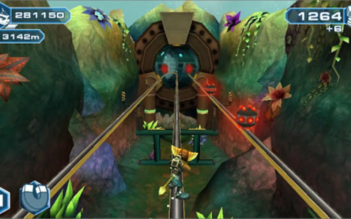 Здесь вы управляете знаменитым героем, преодолевая бесконечные и постоянно меняющиеся локации. Геймплей требует концентрации и быстрой реакции: постоянное движение вперёд, сбор блестящих болтов и увороты от многочисленных препятствий становятся вашей основной задачей. Однако главная изюминка — доступ к уникальному арсеналу франшизы. В критический момент вы можете применить особое оружие, чтобы расчистить путь или собрать больше ресурсов, что добавляет стратегической глубины каждому забегу.