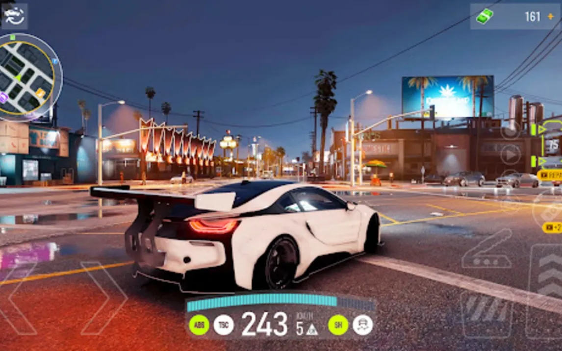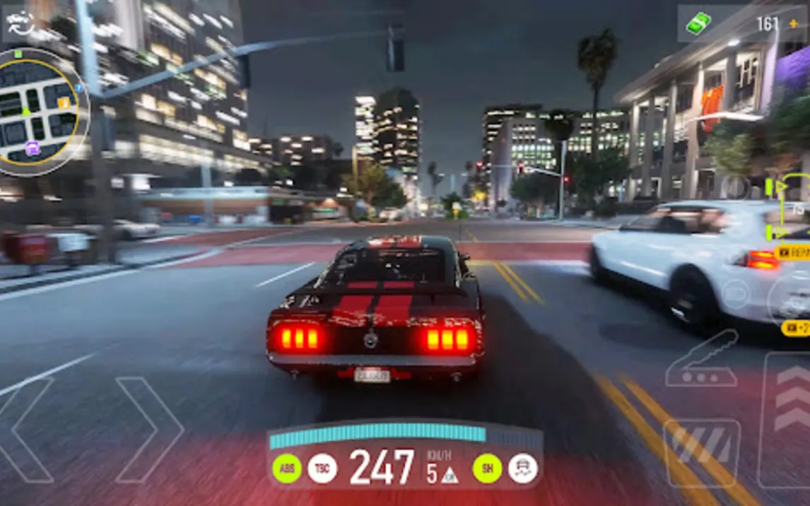Игра поддерживает три конфигурации управления: виртуальные кнопки-стрелки с отдельными педалями газа и тормоза, виртуальный руль с регулируемой чувствительностью и управление через акселерометр устройства. Физика транспортных средств рассчитывает сцепление с покрытием, инерцию при заносах и поведение подвески. Визуальная часть работает на стабильных 60 кадрах в секунду на большинстве устройств, с детализацией моделей авто, динамическим освещением фар и эффектами погоды.