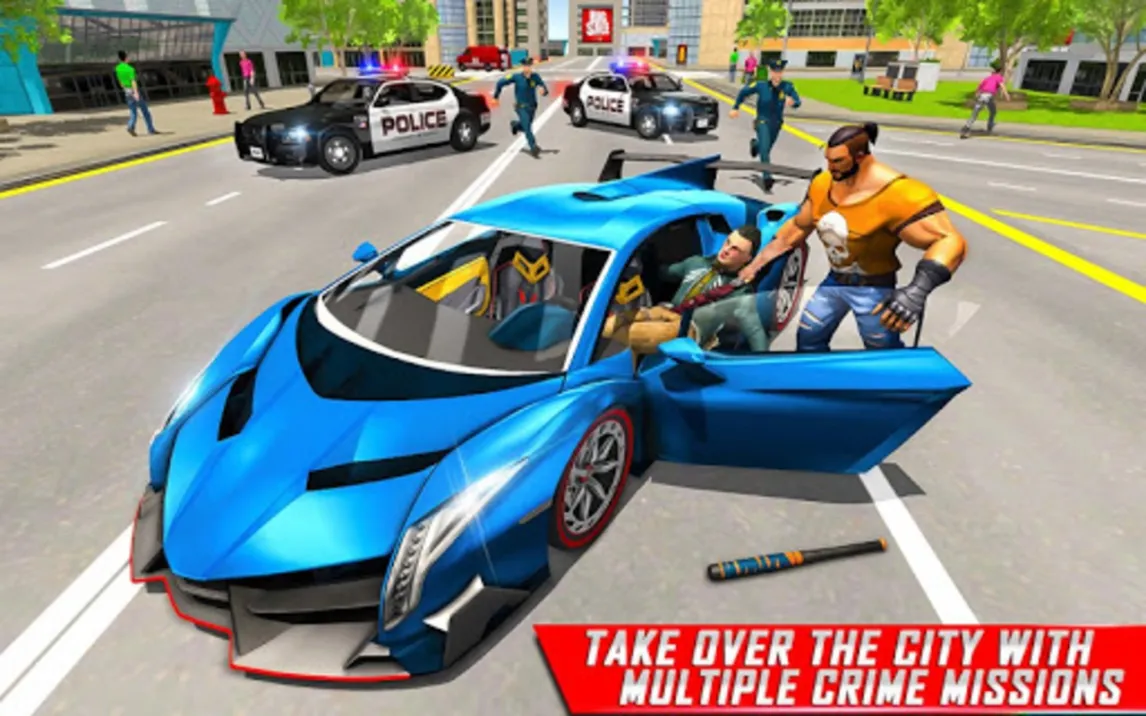Визуальный стиль сочетает детализированные городские локации с оптимизированной производительностью даже на устройствах средней мощности. Управление адаптировано для сенсорных экранов: виртуальный джойстик и контекстные кнопки реагируют без задержек. Мир живёт своей жизнью — жители города, патрули полиции и конкурирующие группировки действуют по своим циклам, создавая непредсказуемые ситуации.