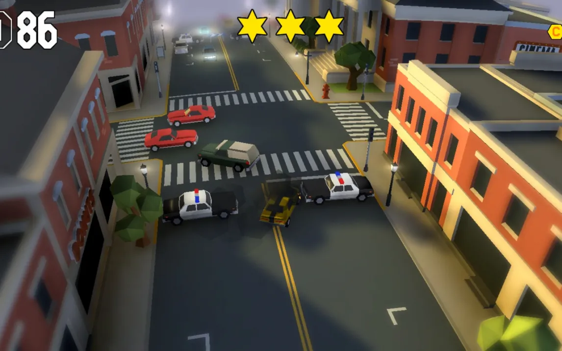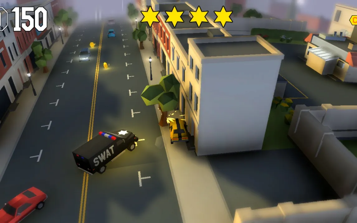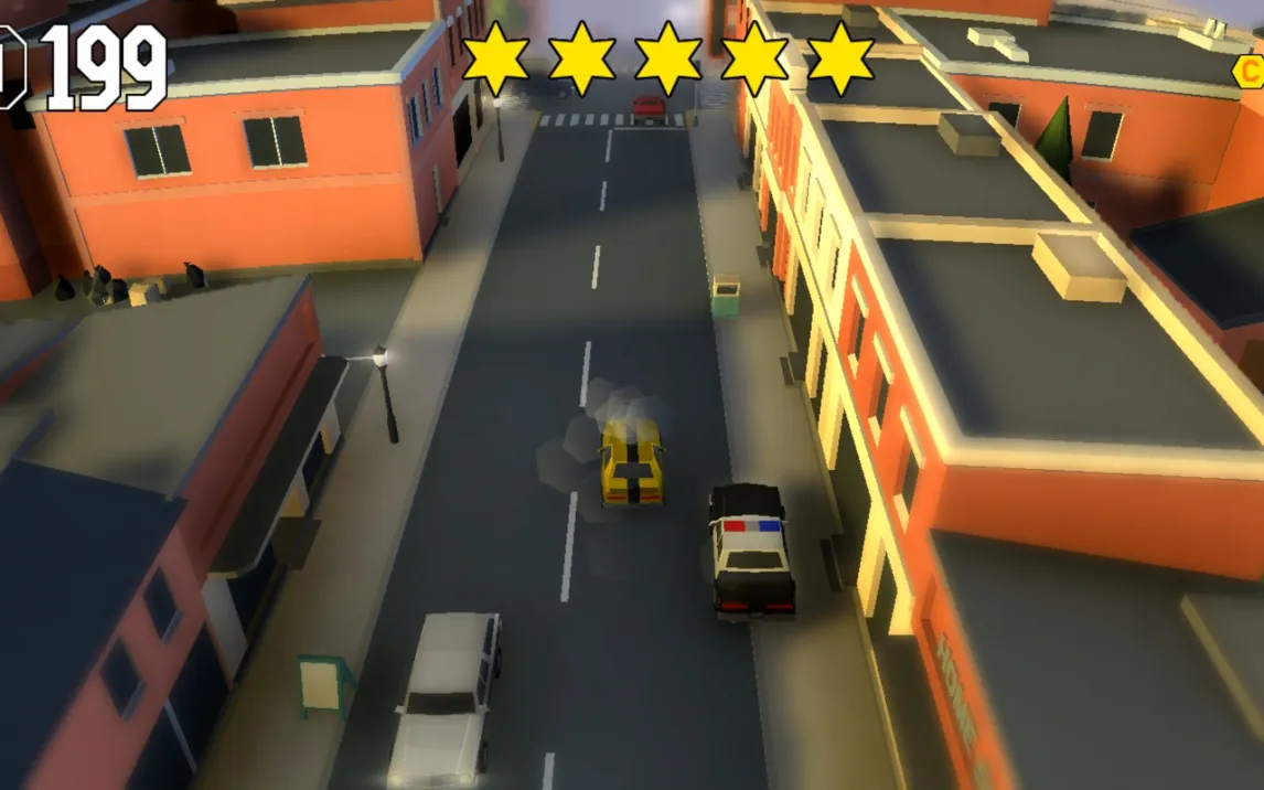 Ядро игрового процесса составляет непрерывное бегство от полиции на улицах города. Сложность преследования прогрессивно нарастает: чем дольше вы остаётесь на свободе, тем больше эскалация ответных мер. Изначально за вами следуют несколько патрульных машин, но со временем в погоню включаются тяжёлые грузовики, на дорогах появляются баррикады и полосы с шипами. Параллельно необходимо собирать монеты, разбросанные по локациям, и маневрировать в потоке гражданского транспорта. Система «звёзд», аналогичная механике из серии GTA, напрямую влияет на агрессивность и масштаб полицейского ответа. Управление максимально упрощено: автомобиль постоянно движется вперёд, а для поворота достаточно нажать на левую или правую часть экрана. При столкновении с препятствием происходит автоматическое движение задним ходом, что позволяет быстро восстановить контроль.