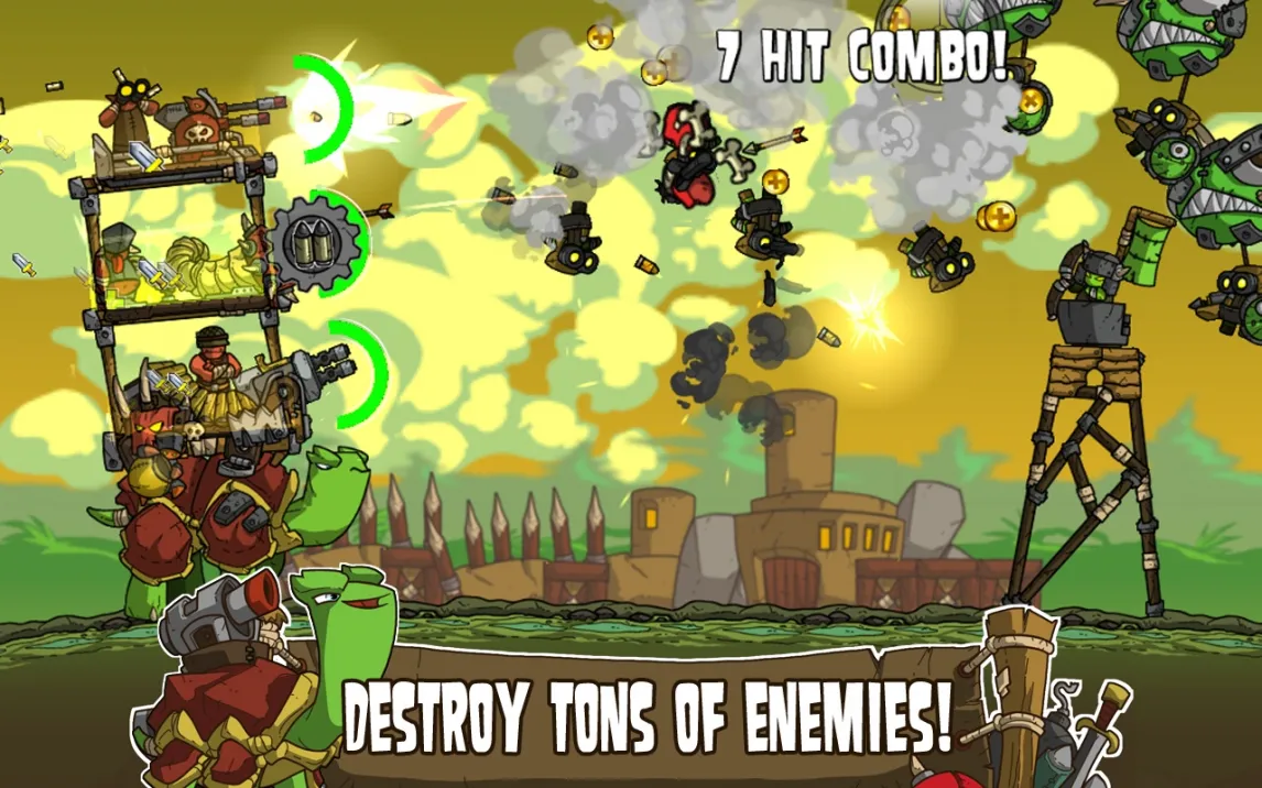 Shellrazer — это гибрид tower defense и side-scrolling экшена. Вы управляете движением легендарной черепахи Гампа, в то время как на ее панцире размещены различные оборонительные здания и отряды воинов. Ключевая задача — стратегически улучшать эти постройки и нанимать солдат, чтобы отражать атаки наземных и воздушных врагов. Каждый уровень — это проверка на способность балансировать между наступлением и обороной в динамично меняющейся обстановке.