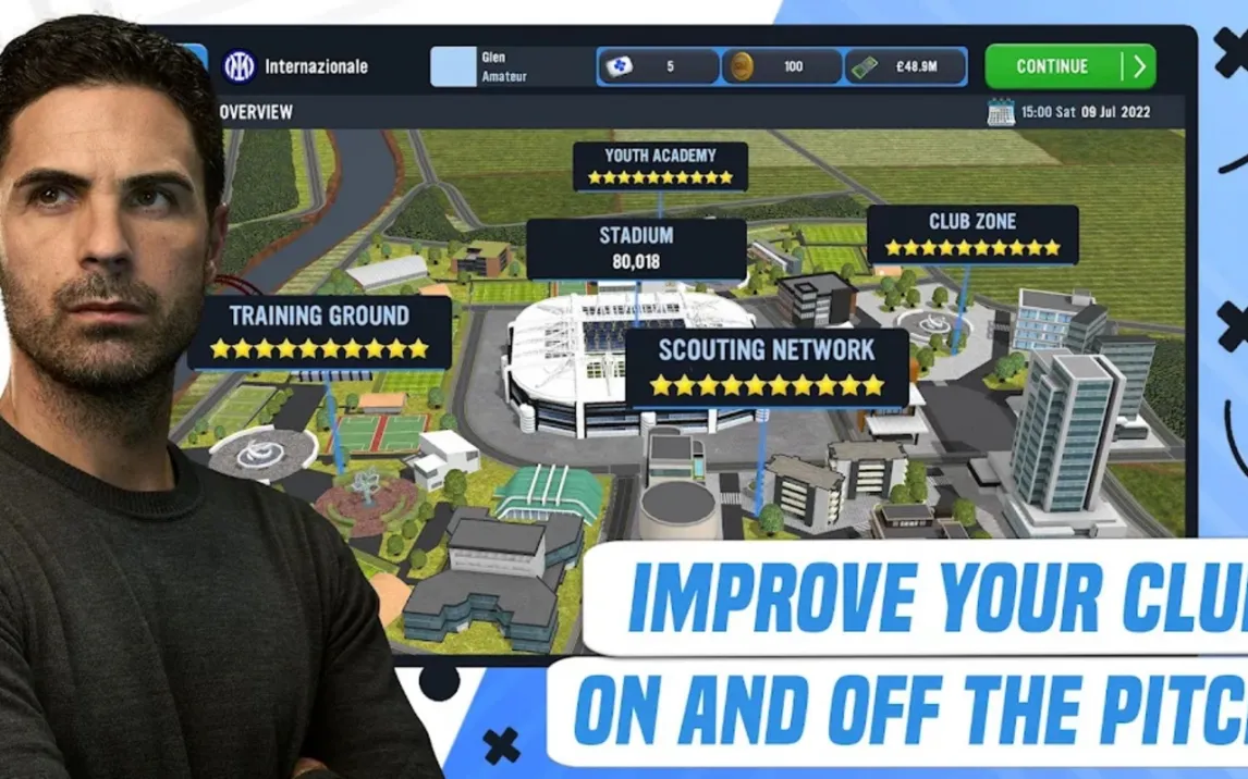 Управление выходит далеко за рамки формирования состава. Из интуитивного главного меню вы получаете доступ к полному спектру инструментов для развития инфраструктуры. Вы распределяете финансовые потоки, улучшаете тренировочные базы, расширяете стадион и заботитесь о комфорте болельщиков, потому что успех клуба измеряется не только трофеями, но и его фундаментом. А с режимом Turbo вы получаете абсолютно чистый игровой процесс без навязчивой рекламы, что позволяет полностью сосредоточиться на стратегии и долгосрочном планировании.