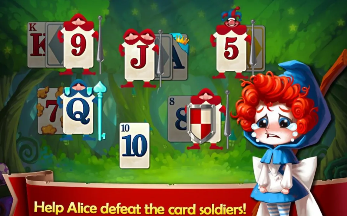 Основой игры является классический пасьянс «Косынка» с интуитивным управлением: перетаскивайте карты, собирая последовательности по убыванию и чередуя масти. Однако каждая новая глава — это уникальная головоломка на специальном игровом поле, вдохновленном «Страной чудес». Вы будете помогать Алисе, Белому Кролику и другим персонажам, очищая поля от карт и открывая новые области сказочного мира. Система подсказок и возможность отмены хода сделают игру комфортной как для новичков, так и для опытных игроков.