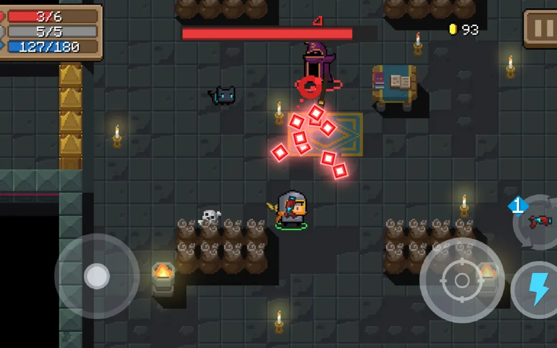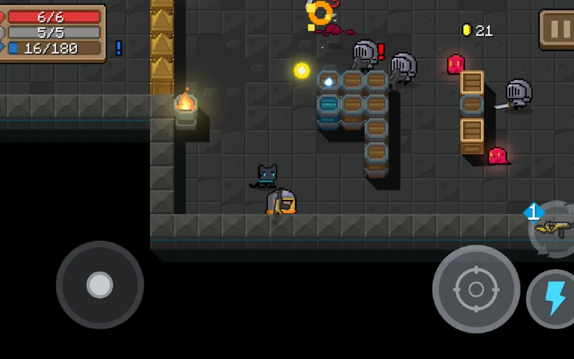 Игровой процесс построен на чётком разделении управления: левая часть экрана отвечает за плавное перемещение персонажа, правая — за всё многообразие действий. Система прицеливания здесь заслуживает отдельного внимания. Она предлагает гибридный подход, сочетающий точный ручной наводку с умной автоматической помощью. Это позволяет сосредоточиться на тактике, а не на механике наведения. Генерация уровней полностью процедурна. Вы никогда не попадёте в два одинаковых подземелья. Комнаты, враги и расположение сундуков меняются каждый раз, превращая каждый заход в свежую головоломку на реакцию и адаптацию.