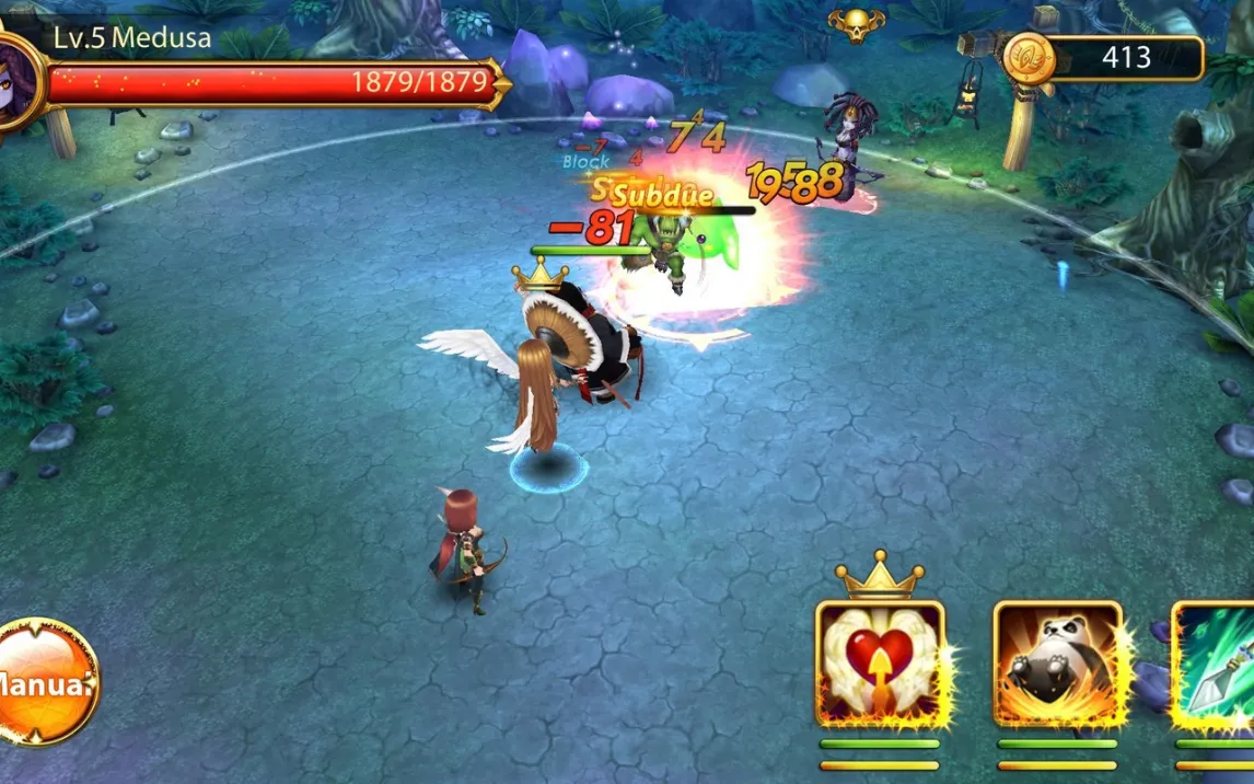 Сражения здесь — это идеальный баланс стратегии и динамичного экшена. Вы свободно перемещаете отряд по локации, а герои автоматически вступают в бой. Ваша ключевая задача — чувствовать момент и вовремя запускать их особые способности. Эти умения требуют перезарядки, поэтому каждое решение имеет вес: обрушить на врагов сокрушительную атаку или спасти союзника мощным исцелением? Прокачка персонажей — отдельное удовольствие: вы будете находить для них легендарные доспехи и оружие, повышать уровень и наблюдать, как они превращаются в настоящих титанов.