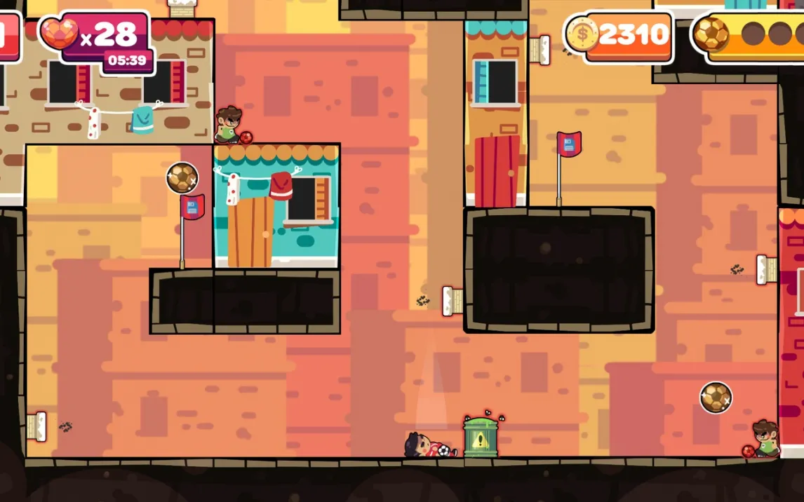 Геймплей строится на точном контроле над персонажем, который может совершать затяжные прыжки, цепляться за уступы и использовать отскок от стен для набора скорости. Каждый район мегаполиса — это уникальная головоломка: индустриальные зоны с движущимися платформами и конвейерами, деловые кварталы с зеркальными небоскребами, создающими оптические иллюзии, и спальные районы с хаотичным уличным движением, которое нужно предугадывать. Ключевая особенность — система комбо, где последовательные точные действия без касания земли многократно умножают очки и открывают доступ к скрытым коротким путям. Прогресс сохраняется в детальной статистике, позволяя анализировать свои лучшие и худшие забеги.