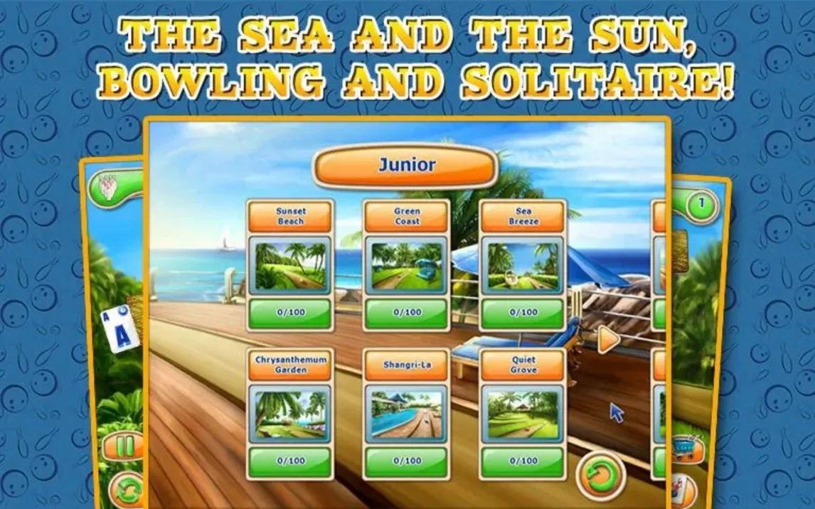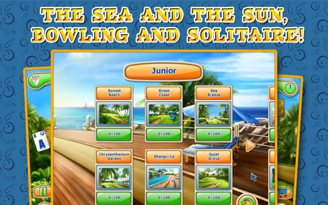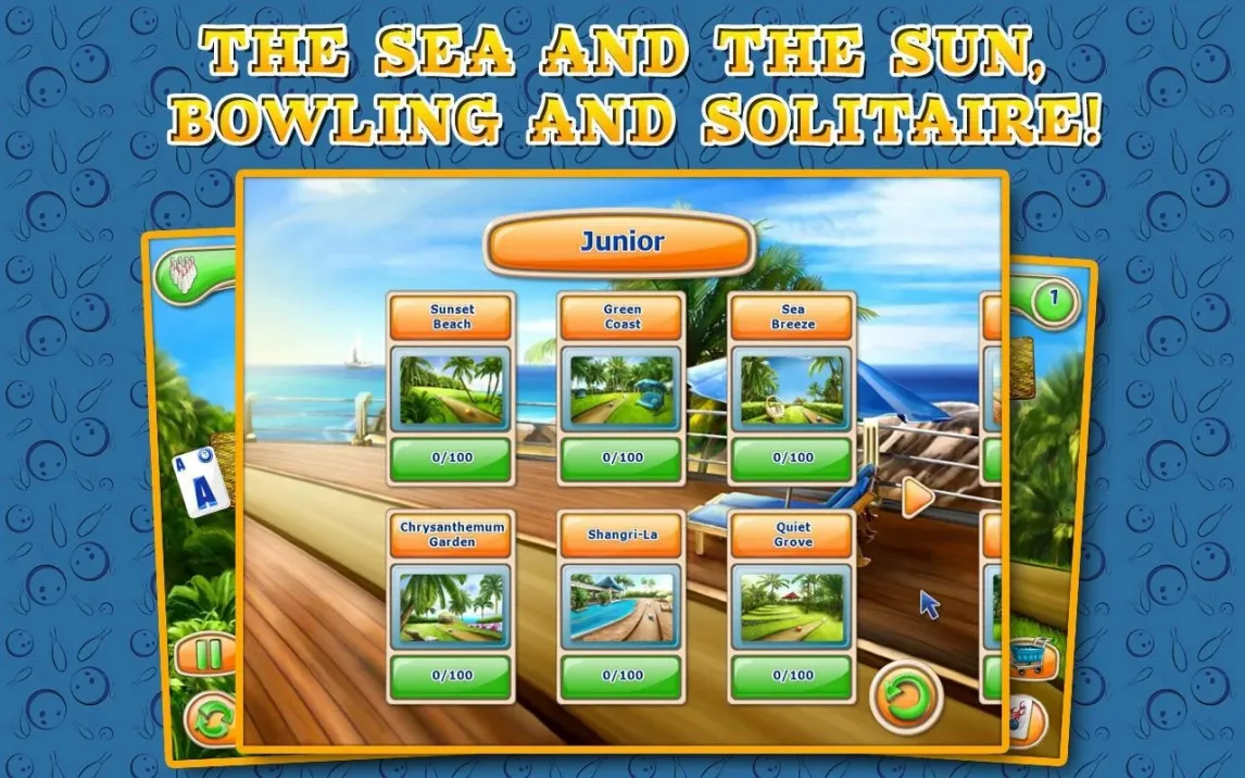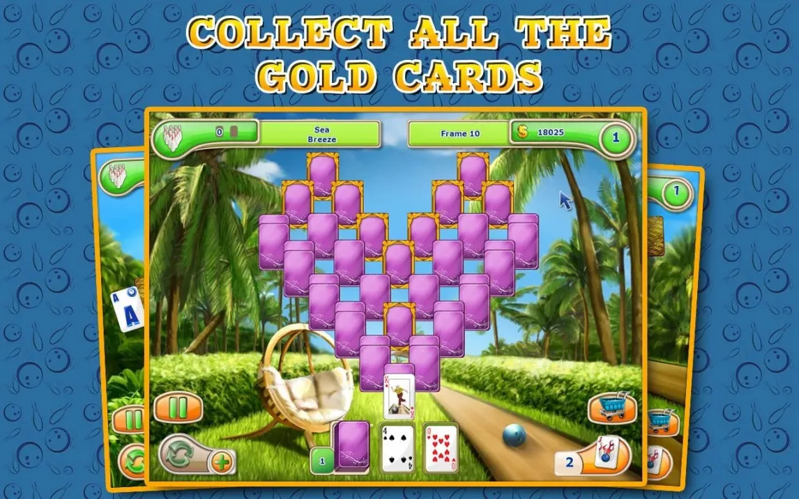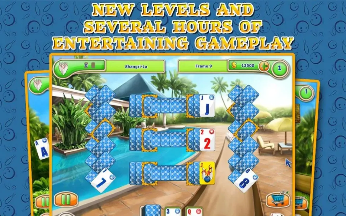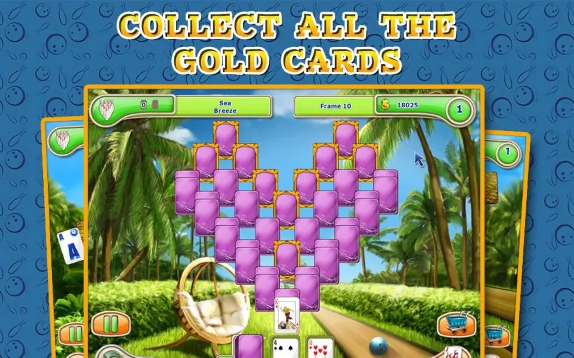 Вас ждёт долгое путешествие через 120 уровней. Каждый новый этап ставит уникальные задачи и постепенно раскрывает новые грани игровой механики. Оформление в стиле курортного боулинг-отеля — это не просто фон. Оно создаёт неповторимое ощущение лёгкого отдыха и концентрации одновременно. А разнообразие режимов игры вдохновлено лучшими классическими пасьянсами, такими как FreeCell и Pyramid, но преподнесено в совершенно свежем, инновационном ключе.