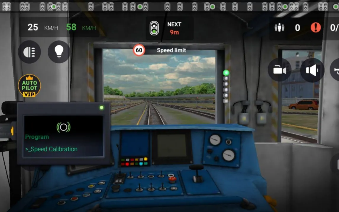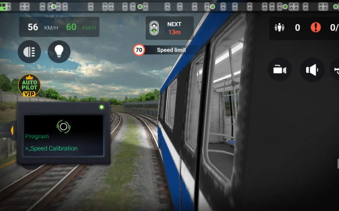Маршруты проходят через разнообразные локации, включая городские тоннели, наземные участки и загородные зоны. В вашем распоряжении находится кабина поезда с функциональной панелью управления. Основные действия включают открытие и закрытие дверей, использование рычага контроля скорости для разгона и торможения, а также переключение видов камеры для обзора салона и путей.