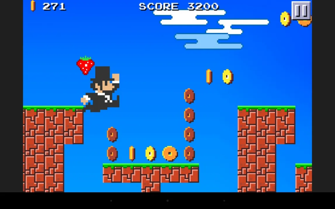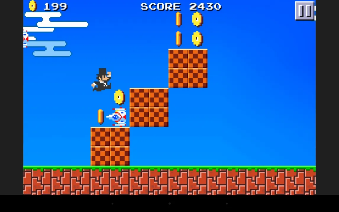 Геймплей мгновенно узнаваем для всех, кто когда-либо управлял Марио: непрерывный бег слева направо, сбор блестящих монет, опасные пропасти и враги на пути. Однако управление прыжком здесь требует настоящего мастерства. Высота и дальность прыжка полностью зависят от вас: просто коснитесь экрана, чтобы подпрыгнуть, но удерживайте палец, чтобы зарядить мощный, далёкий прыжок. Этот нюанс превращает каждое препятствие в микро-головоломку. Нужно точно рассчитать момент, чтобы перемахнуть через яму с пираньей или вовремя отскочить от идущего навстречу Наполеона.