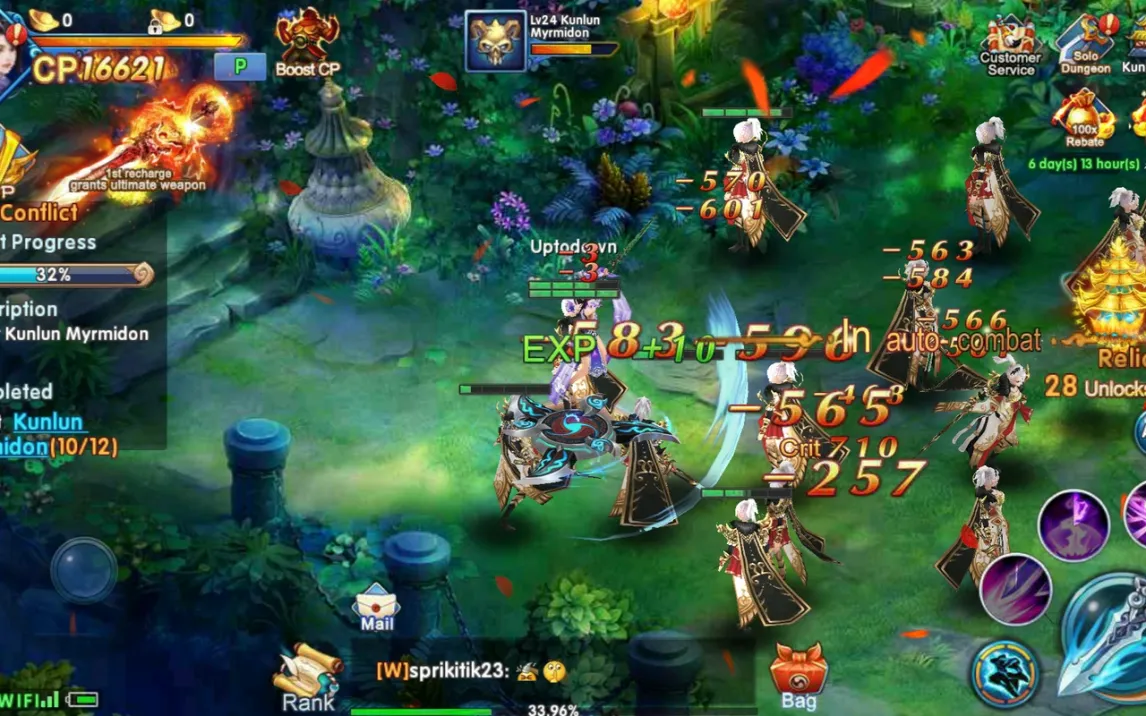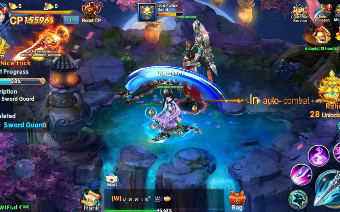 Swords of Immortals представляет собой многопользовательскую ролевую игру с открытым фэнтезийным миром. После выбора расы и имени персонажа игрок получает полный контроль над его развитием: система прокачки позволяет детально улучшать характеристики, адаптируя героя под свой стиль. Управление осуществляется через виртуальный джойстик в левой части экрана и панель навыков справа, где расположены кнопки для базовых атак и активации специальных способностей. Для тех, кто предпочитает стратегическое планирование, реализован полноценный режим автоматического боя — персонаж самостоятельно перемещается и сражается, позволяя игроку сосредоточиться на сборе экипировки.