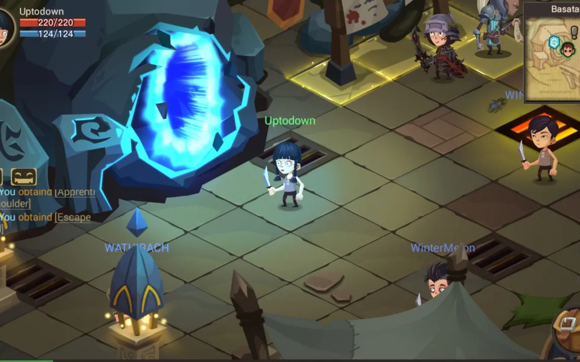 Управление интуитивно: касайтесь экрана, чтобы двигаться. Герой автоматически атакует врагов и подбирает трофеи. За победы вы получаете опыт, повышаете уровень и открываете мощные навыки. Между забегами вы возвращаетесь в центральное поселение Басатан. Здесь можно торговать, общаться с другими игроками, улучшать снаряжение и готовиться к новому спуску.
