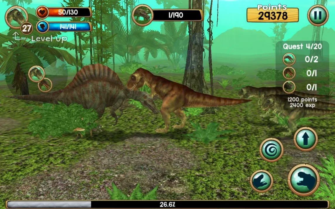 В игре TRex Sim 3D вы принимаете на себя роль тираннозавра, развивающего свою территорию в трёхмерном мире. Основной цикл включает исследование локаций, охоту на различных динозавров и сбор ресурсов для эволюции. Доступны режимы свободного исследования и целевые миссии на выживание, которые постепенно открывают новые области карты. Управление реализовано через виртуальный джойстик и сенсорные жесты для атак, что позволяет точно контролировать передвижение и взаимодействие с окружением.