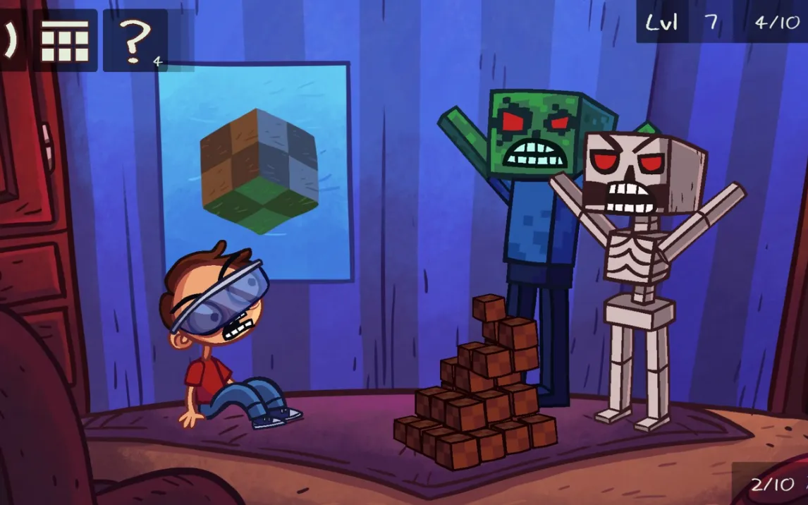 Игровой контент полностью построен на интертекстуальных отсылках к известным игровым франшизам. Уровни моделируют, пародируют или используют визуальные коды таких проектов, как Angry Birds, Candy Crush Saga, Portal и других. Ключевой элемент — это узнавание исходного материала и последующее нарушение ожиданий от его механик. Решение часто заключается в взаимодействии с элементом, который в оригинальной игре был бы нефункционален, или в совершении действия, противоречащего игровой логике прототипа.