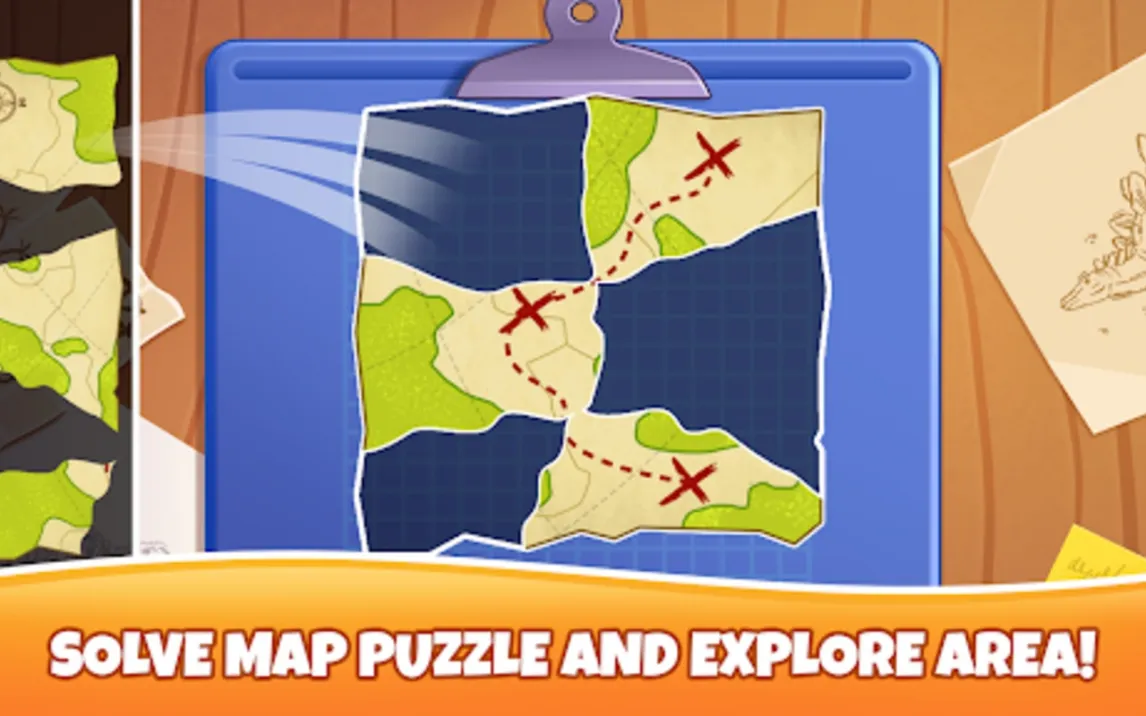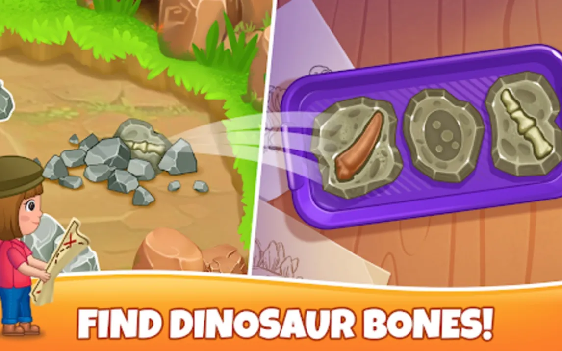 Основное пространство игры — это интерактивный парк, разделенный на несколько тематических зон. В зоне раскопок пользователь получает доступ к виртуальным инструментам: кисточке для смахивания песка и лопате для извлечения более крупных фрагментов. Процесс сборки скелета динозавра, такого как Тираннозавр или Стегозавр, организован как головоломка на сопоставление форм. Каждый правильно установленный костный элемент сопровождается визуальной и звуковой обратной связью, а финальной анимацией становится «оживление» собранного древнего ящера.