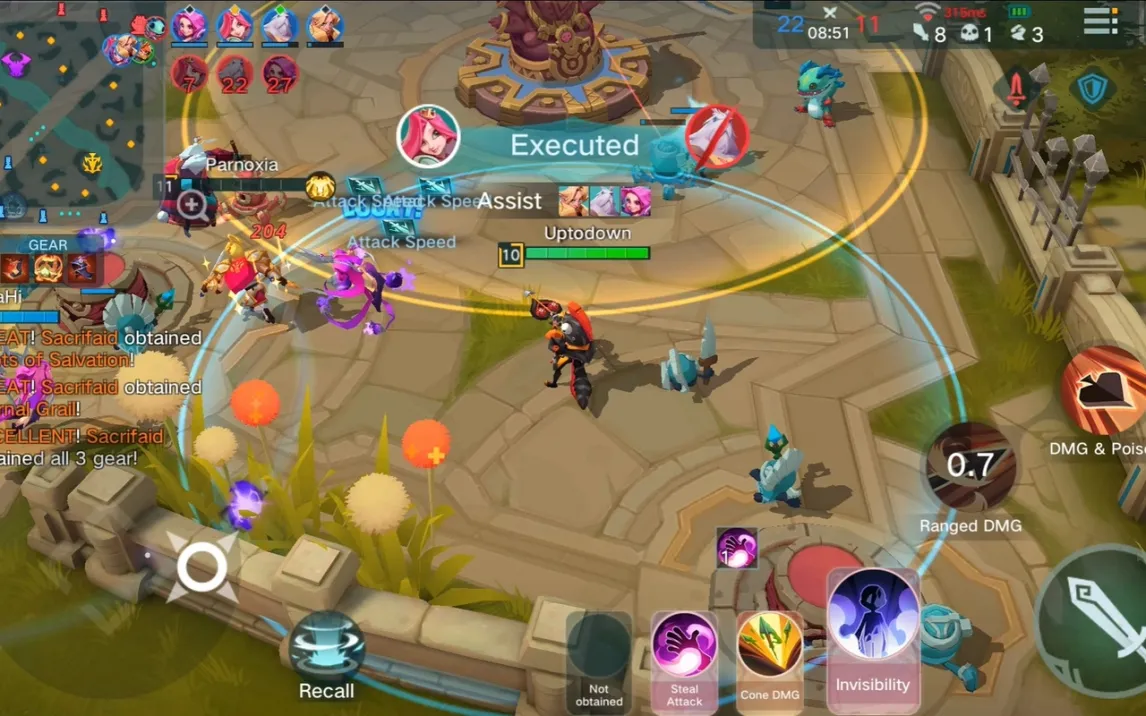 Игра предлагает расширенный список персонажей, разделенных на специализированные категории согласно их роли в бою. Доступны классы воинов для ближнего боя, убийц для скрытных атак и магов для нанесения магического урона с дистанции. Каждый герой обладает уникальным набором из четырех активных способностей, которые можно комбинировать в бою. Визуальный стиль игры выполнен в яркой детализированной графике, а система прокачки позволяет модифицировать характеристики героя в течение матча за счет внутриигровых предметов.