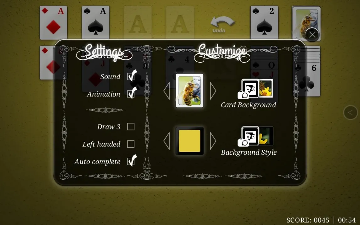 Геймплей здесь невероятно гибкий и персонализированный. Вы можете не только выбирать между классическим правилом «Брать 1 карту» и более стратегическим вариантом «Брать 3 карты», но и полностью менять эстетику стола. Загружайте собственные фоны из галереи устройства, чтобы создать уникальную атмосферу для каждой игры. Интерфейс интуитивно понятен и оптимизирован как для правшей, так и для левшей, что делает управление молниеносным и комфортным для всех. А с активацией режима Turbo игра полностью освобождается от рекламных пауз, позволяя с головой погрузиться в решение карточных головоломок.