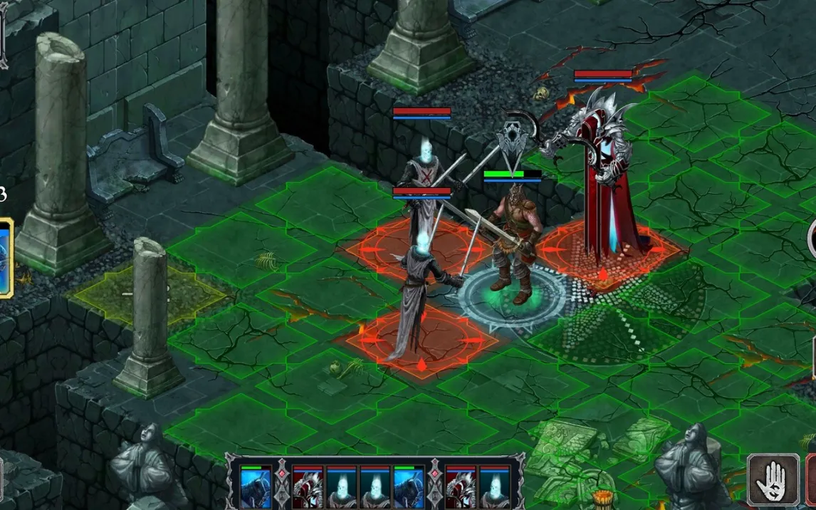 Боевая система основана на сетке. Каждый член отряда обладает индивидуальным показателем дальности перемещения за ход. Атака возможна только по целям, занимающим соседние клетки. Порядок действий цикличен: после хода игрока следует ход противников. Между экспедициями открывается доступ к меню управления отрядом. Здесь реализована классическая система прогрессии: улучшение характеристик героев и экипировка их оружием и броней различной редкости. Внутри подземелий разрешено использование расходуемых предметов, например, зелий для восстановления здоровья или маны.