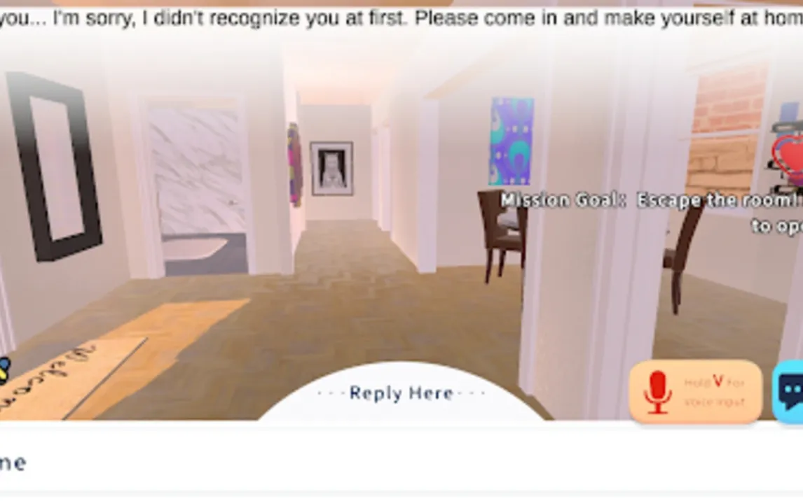 Стартовая локация — закрытая комната, из которой необходимо найти выход. Основным помощником в этом выступает персонаж Эдди. Передвижение по дому свободное: вы можете исследовать несколько помещений и взаимодействовать с объектами окружения, нажимая на них. Взаимодействия носят в основном визуальный характер и не влияют на сюжетную линию. Прогресс в решении головоломок и продвижении по локациям напрямую связан с диалогами, в которых ИИ-собеседник может давать подсказки или реагировать на ваши действия.