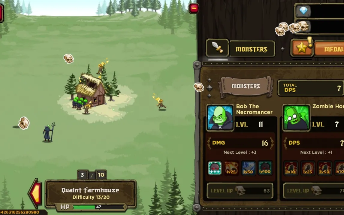 Игровой процесс начинается с базовых тапов по экрану, заставляющих некроманта атаковать и собирать черепа — локальную валюту. Однако суть раскрывается глубже: это экономическая стратегия по эффективному перераспределению ресурсов. Каждое приобретенное улучшение или новый союзник из нежити, будь то зомби или скелет, работает как автономный актив, наносящий постоянный урон. Со временем акцент смещается с ручного кликинга на управление растущей армией и выбор приоритетных апгрейдов, что формирует satisfying-петлю «сбор ресурсов — усиление — новый уровень разрушений». Отсутствие навязчивой рекламы и наличие встроенного режима Turbo (за отдельную внутриигровую валюту) являются не просто фичами, а важными элементами, снижающими трение и ускоряющими прогресс, что критично для долгосрочного удержания в подобных проектах.